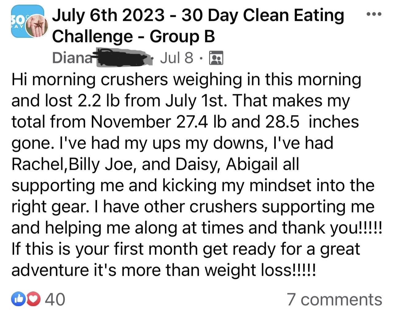 The CleanFoodCrush coaching team, led by Rachel, was a game-changer.
