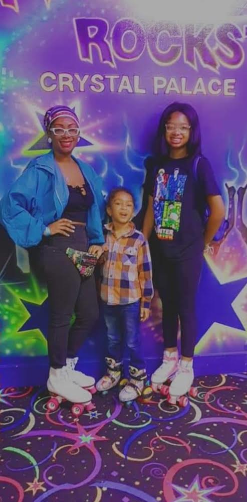 This is at a skating rink in 2021… just spending time trying to be active while having fun with my kiddos lol 💕
