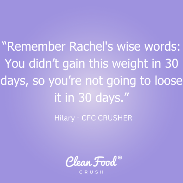 If you’re considering joining the 30-Day Clean Eating Challenge, remember Rachel’s wise words: “You didn’t gain this weight in 30 days, so you’re not going to lose it in 30 days.” Be patient with yourself and get active.