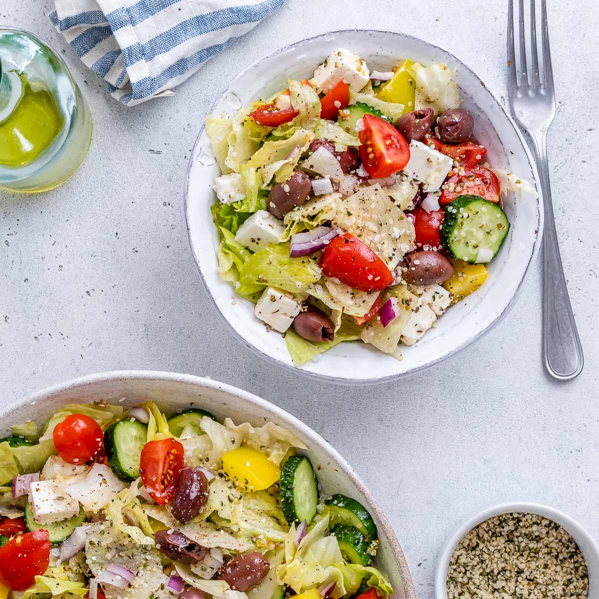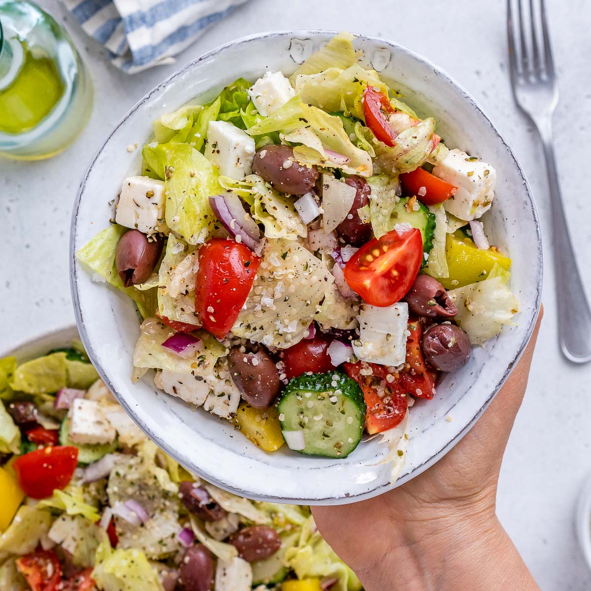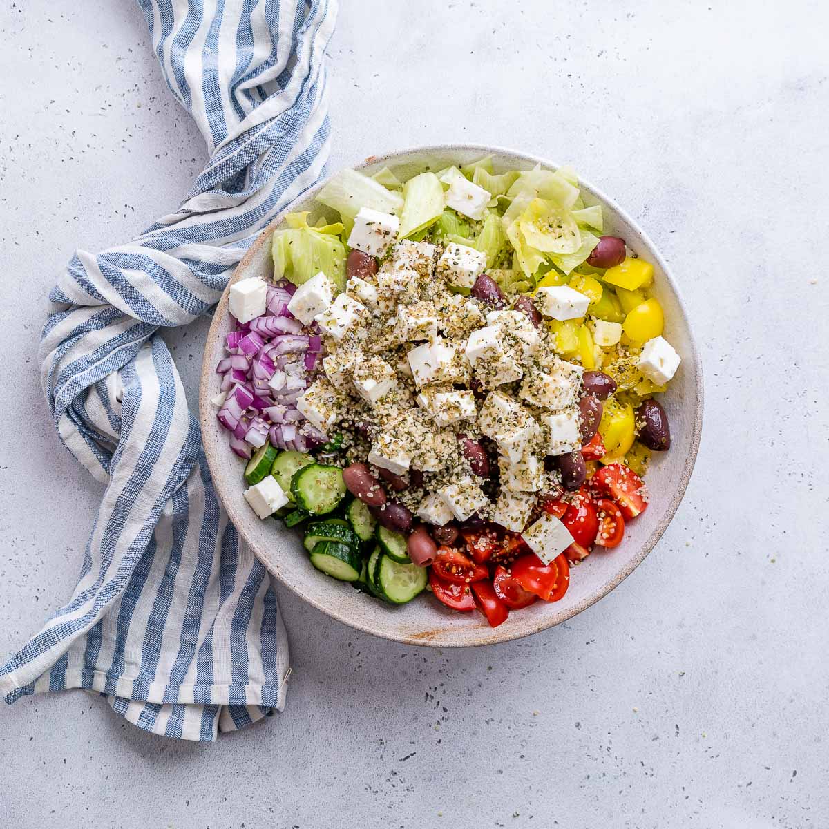 While not necessarily a traditional Greek salad, it is a delicious celebration of our favorite Greek flavors, with the crunch of iceberg lettuce as the perfect foundation.