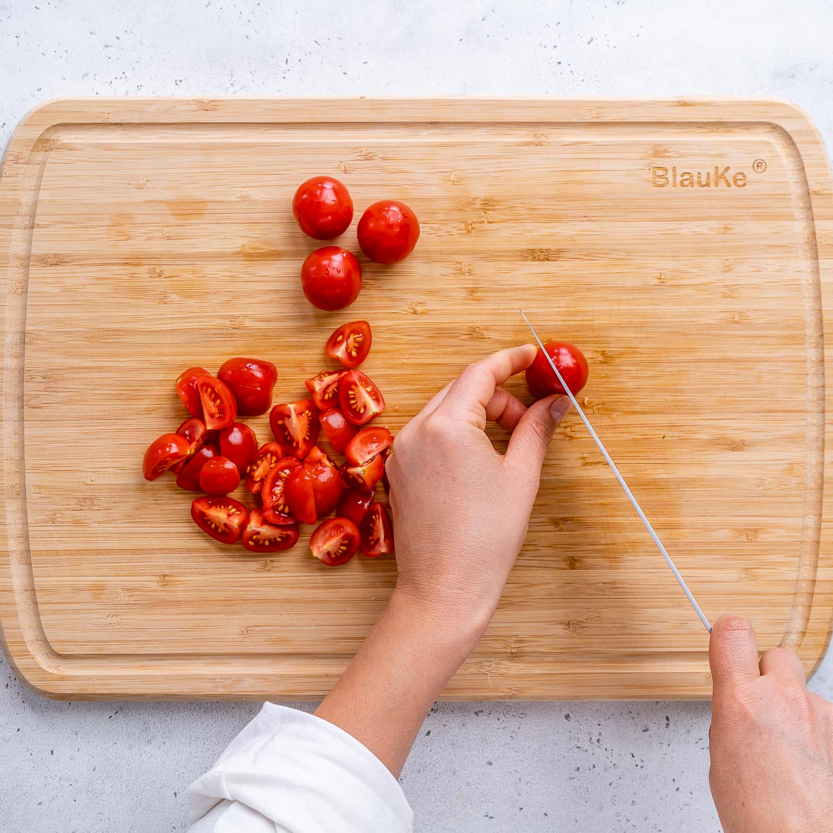 - 1 lb cherry or grape tomatoes, quartered