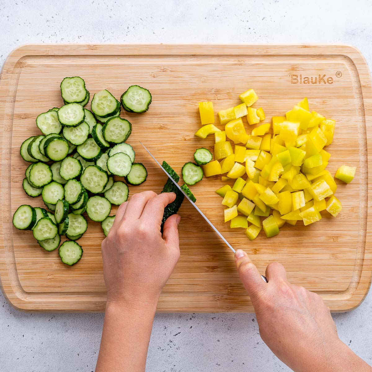 - Prepare and chop all your fresh veggies and place them in a large bowl.