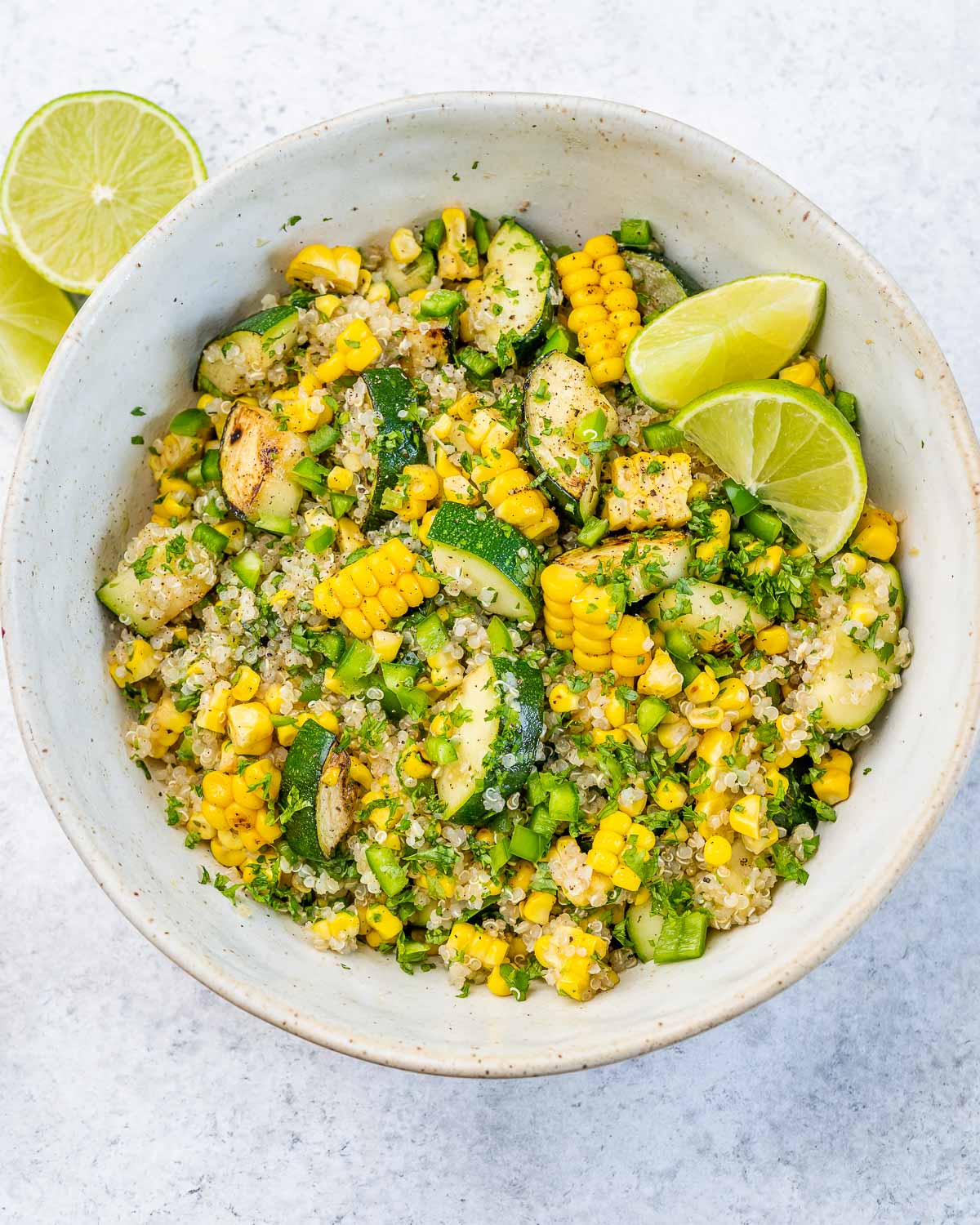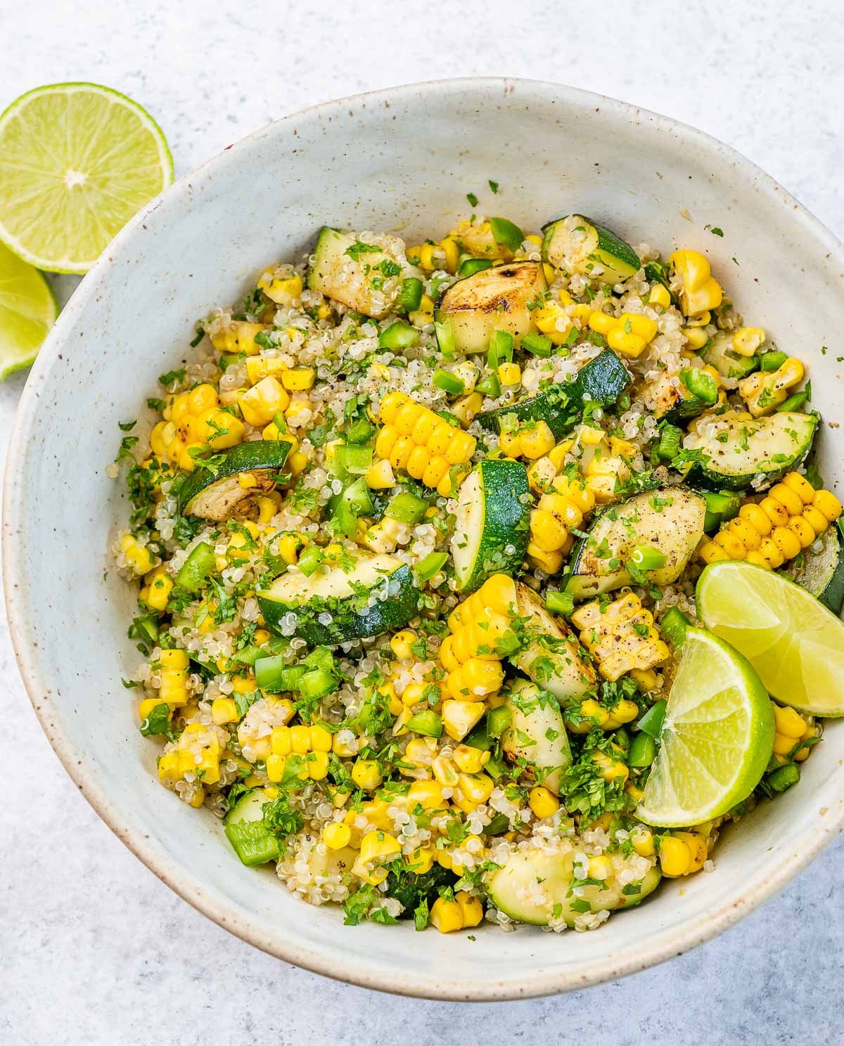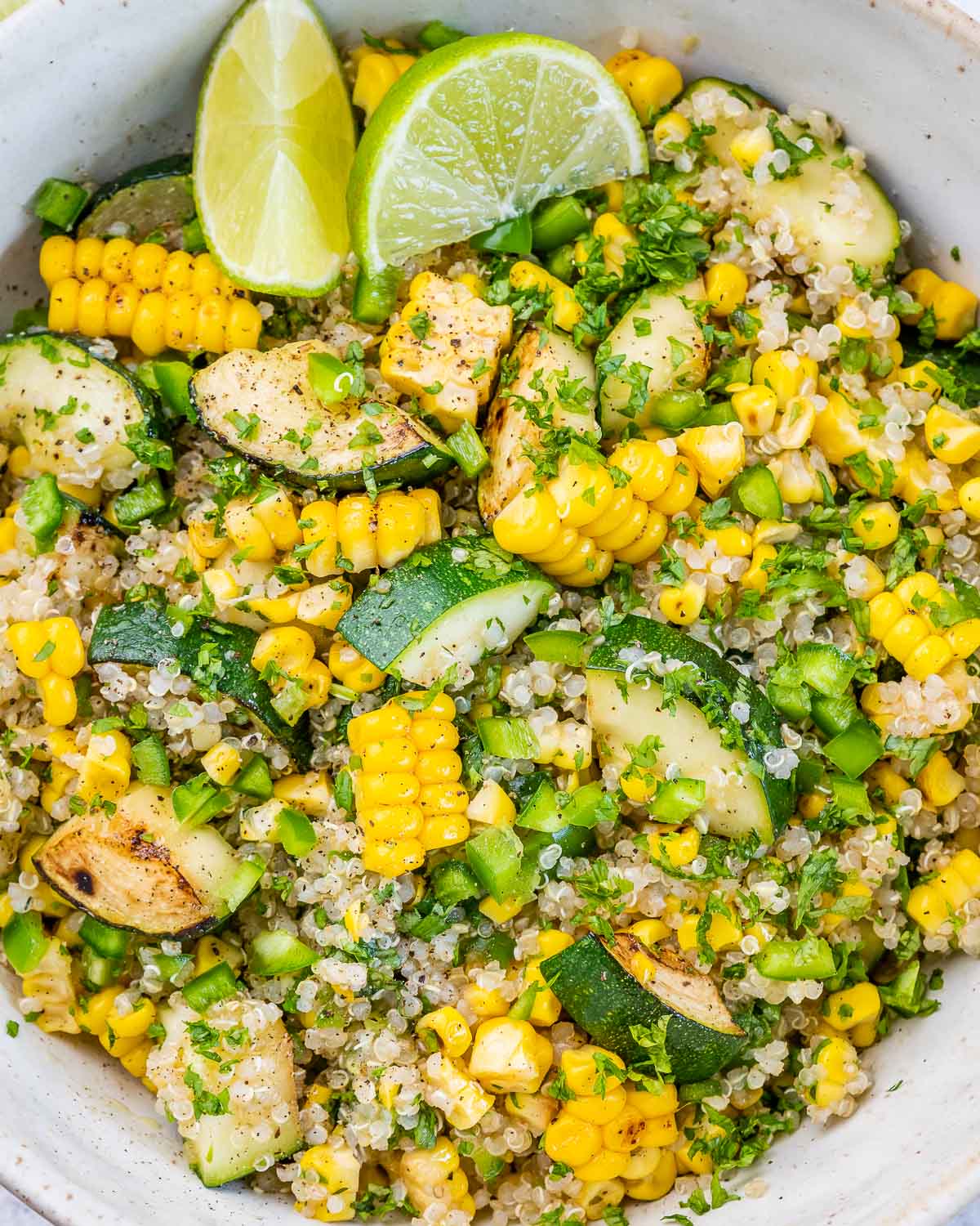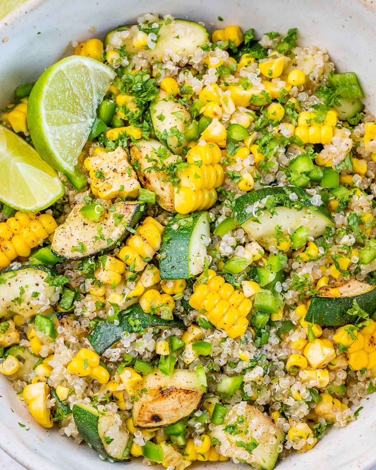 - Stir in the Italian seasoning, cooked quinoa, fresh lime zest and juice, jalapeno, and cilantro.