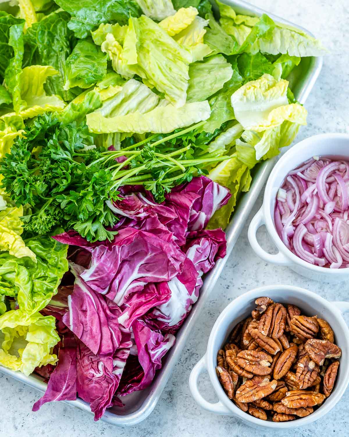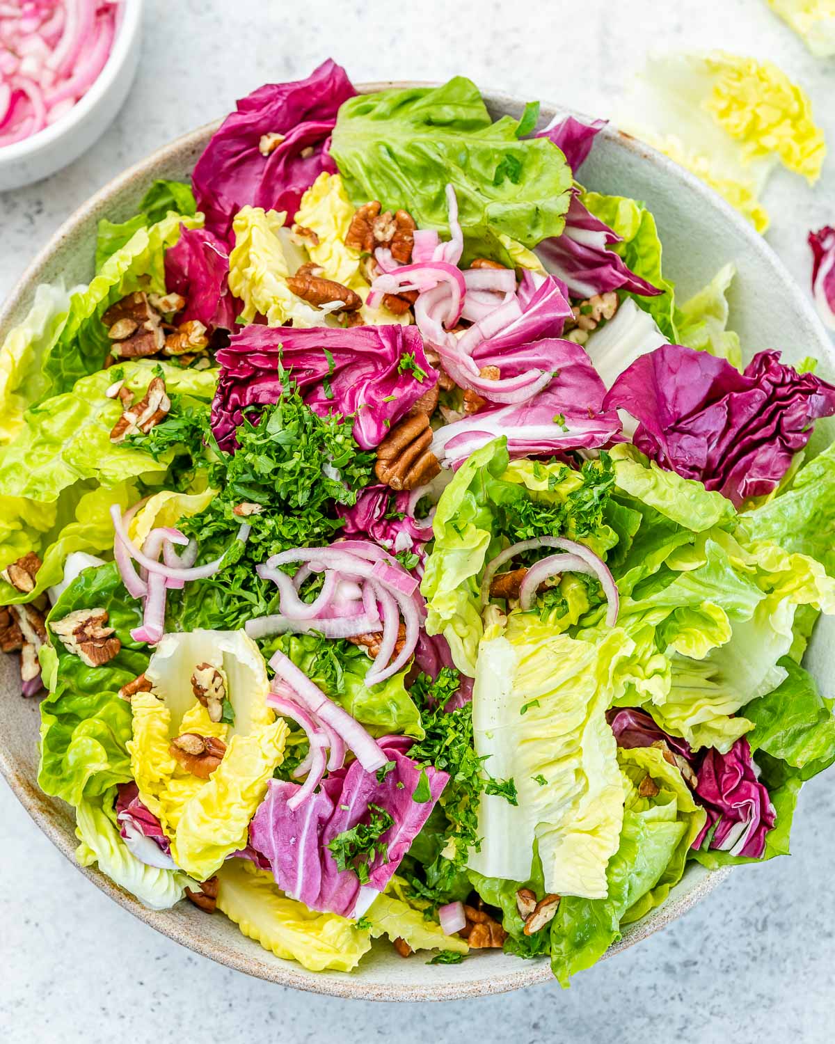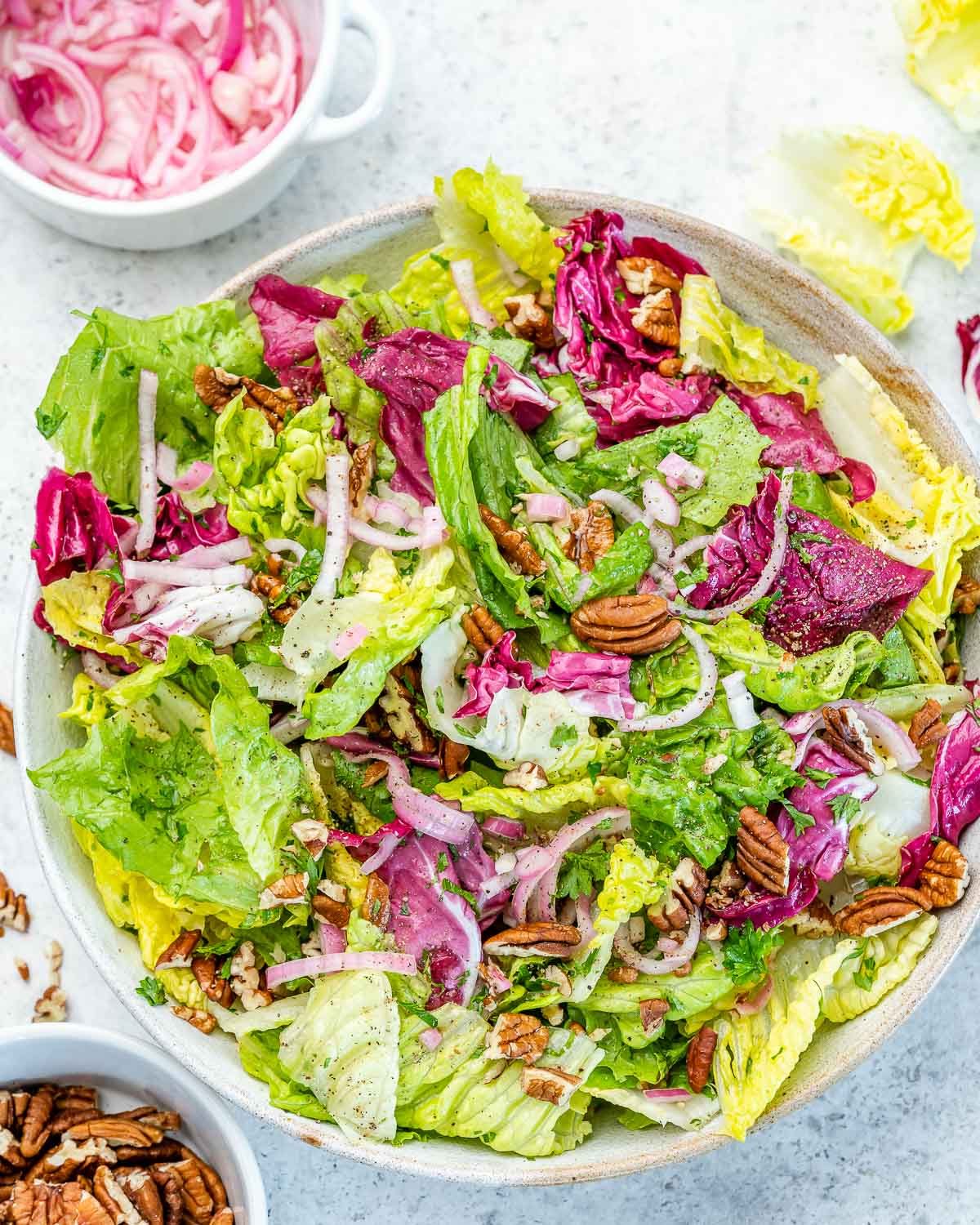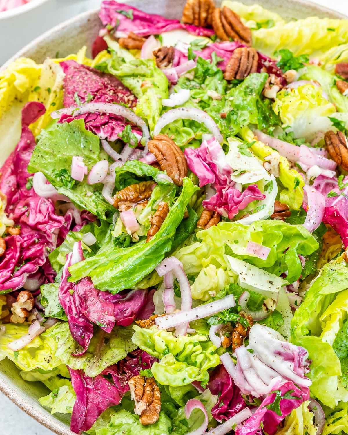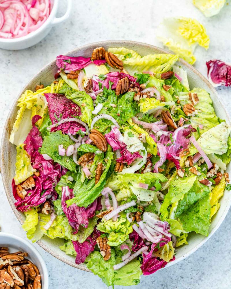 A light and clean fresh salad to serve alongside your hearty, creamy, or rich foods to balance out the meal.
