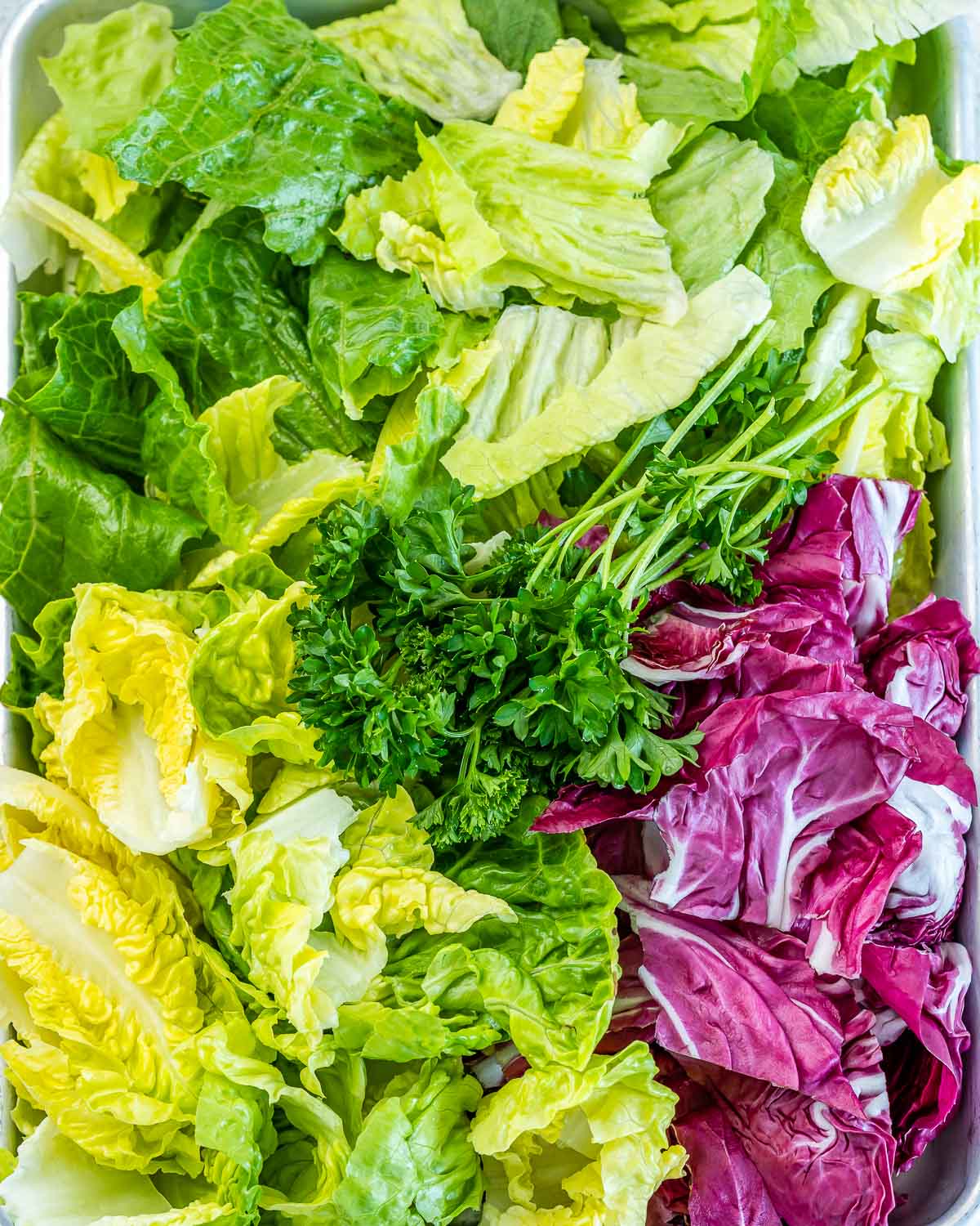 - Place your prepared lettuces and parsley in a large bowl.