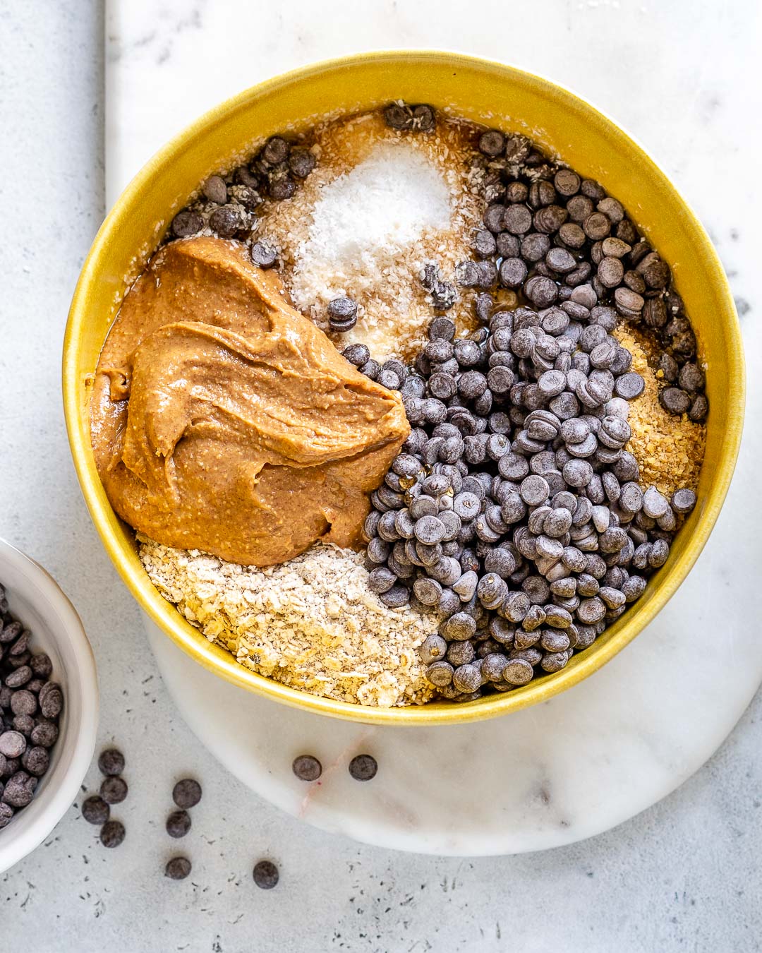Look for a higher percentage cacao for the chocolate chips, and your nut butter should contain nothing but nuts, and maybe sea salt. Steer clear of added oils and/or added sugar in nut butters if possible.