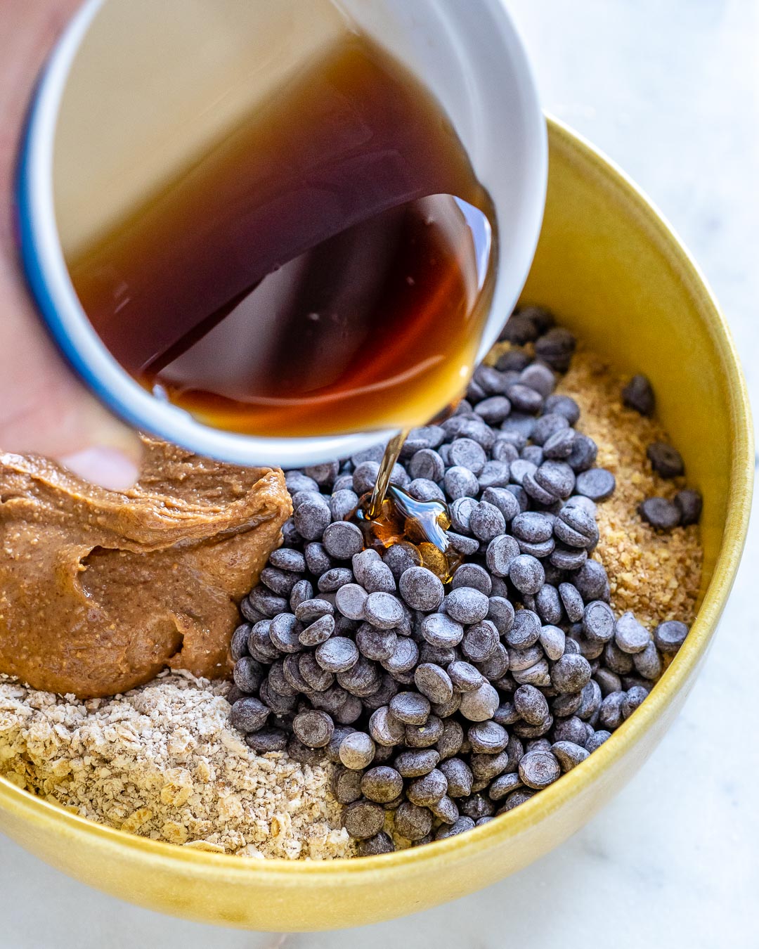 Using a cookie scoop, scoop the mixture into your palm and roll to form a ball.