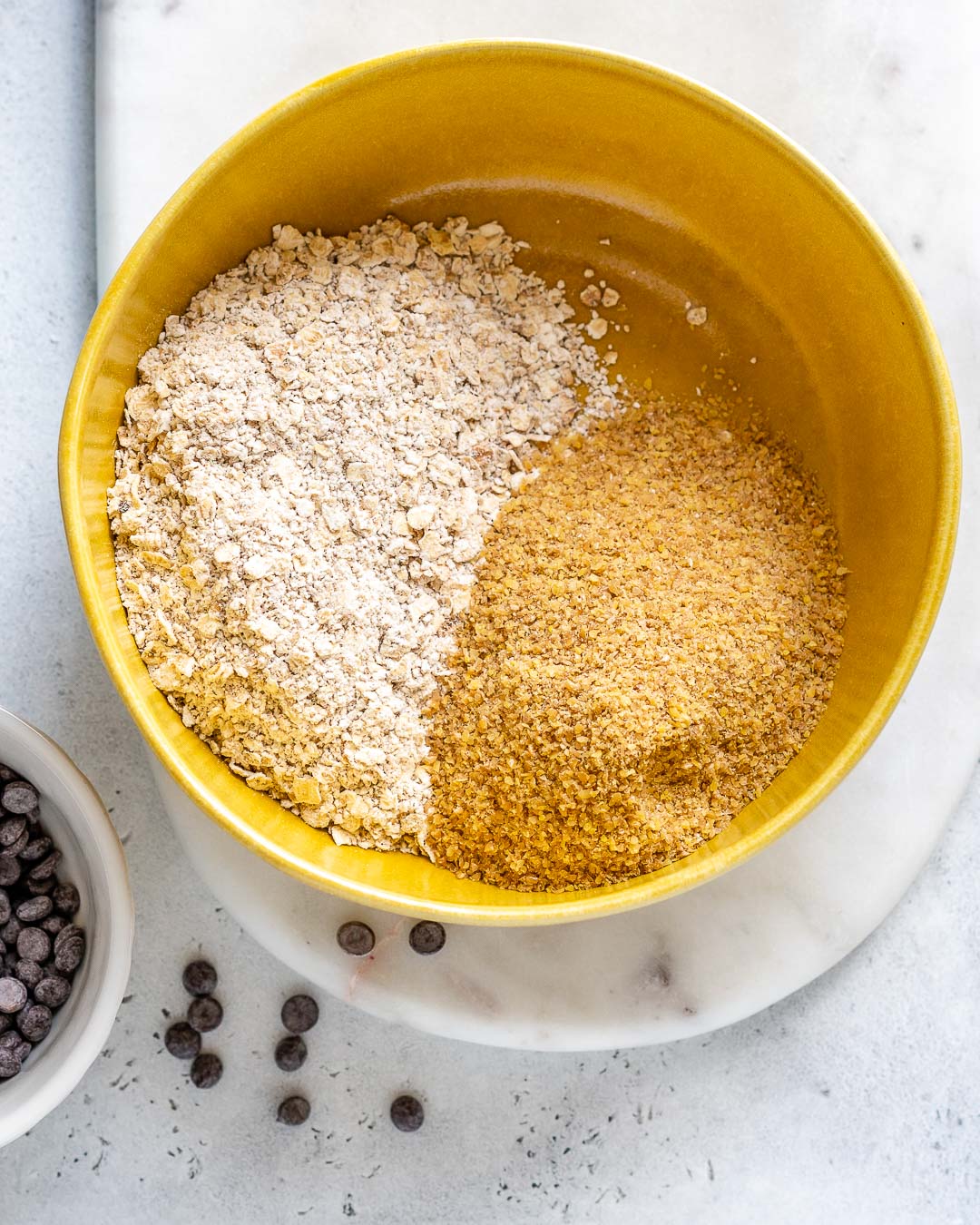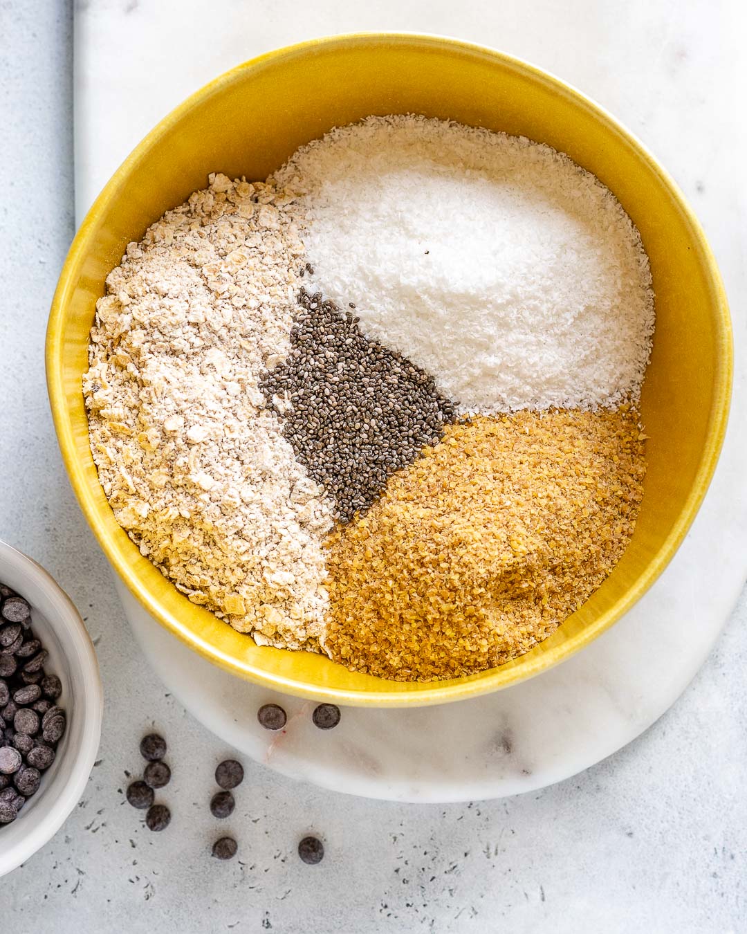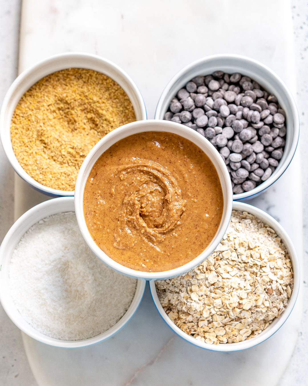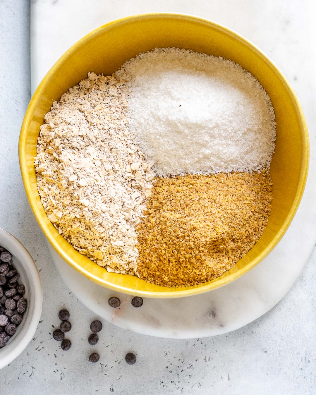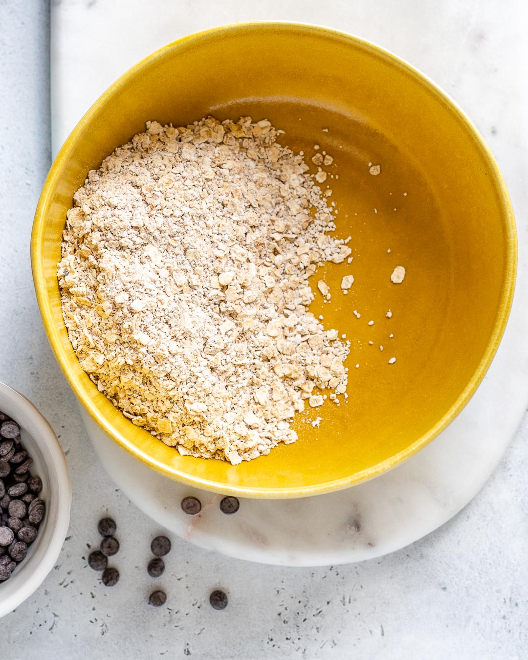 I quickly pulsed the oats in my food processor for just a few seconds to create a bit finer texture. This is simply a preference, and not required. A high speed blender also works really well to grind oats just a bit. Don’t over process though, or else you’ll have oat flour, which lacks beautiful texture for these treats.