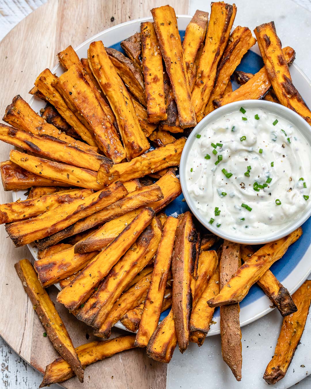 Tired of soggy fries? Try using avocado oil, which is far superior for roasting vegetables than other oils. Just the right amount will help keep your fries crisp. Then pair them with this healthier ranch that’s just as (if not more) tasty as the standard, high-fat dip.