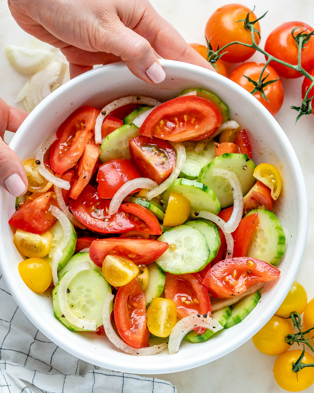 Growing a garden is a great way to get some sunshine and vitamin D… plus so many more vitamins from what you grow! This Marinated Garden Tomato + Cucumber Summer Salad is something you can grow yourself. Sunshine POWERUP!