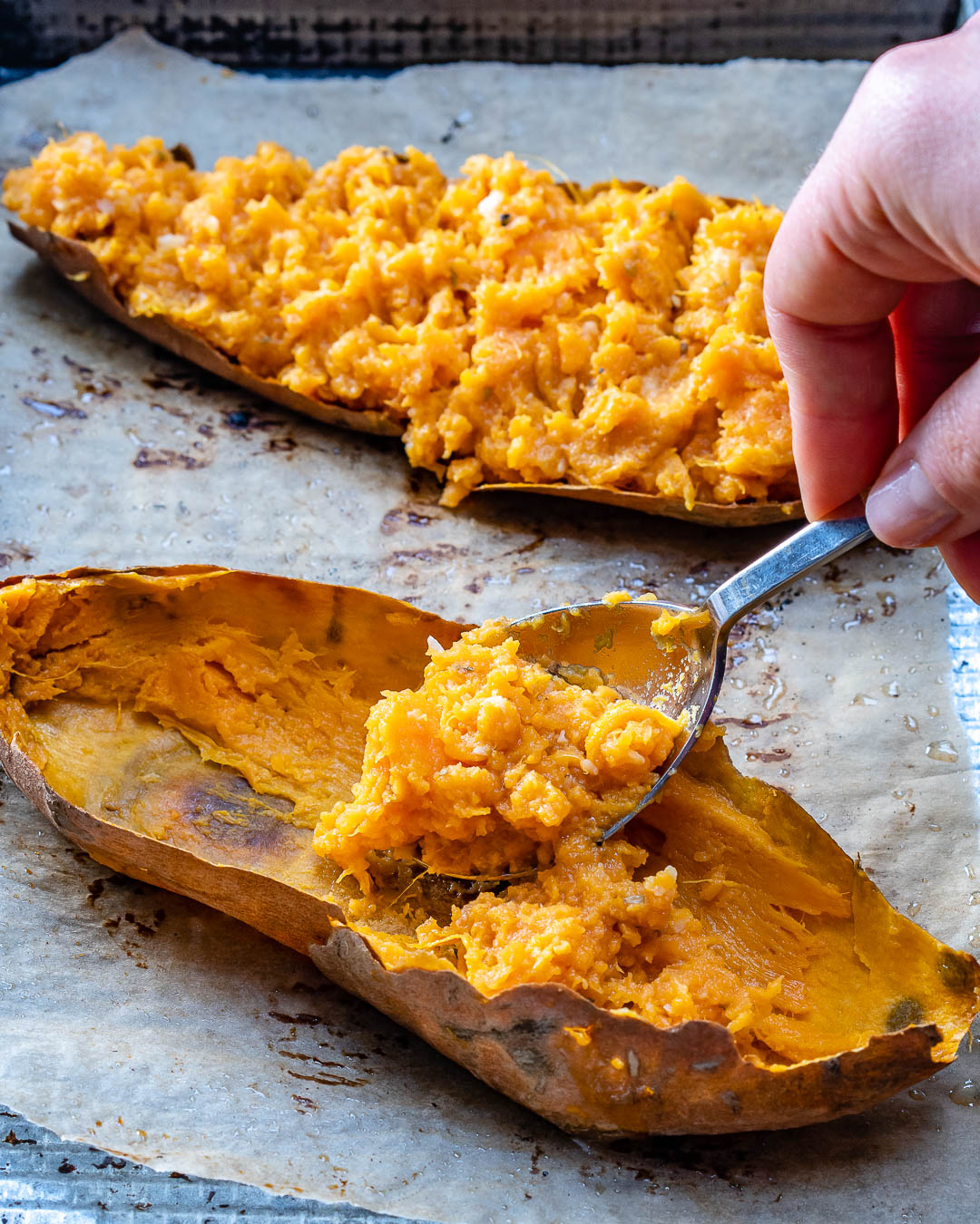 The oils found in cold-water fish, such as salmon, repair our cell walls, reduce inflammation, help balance our hormones. Here’s a recipe for one-sheet pan garlic butter salmon.