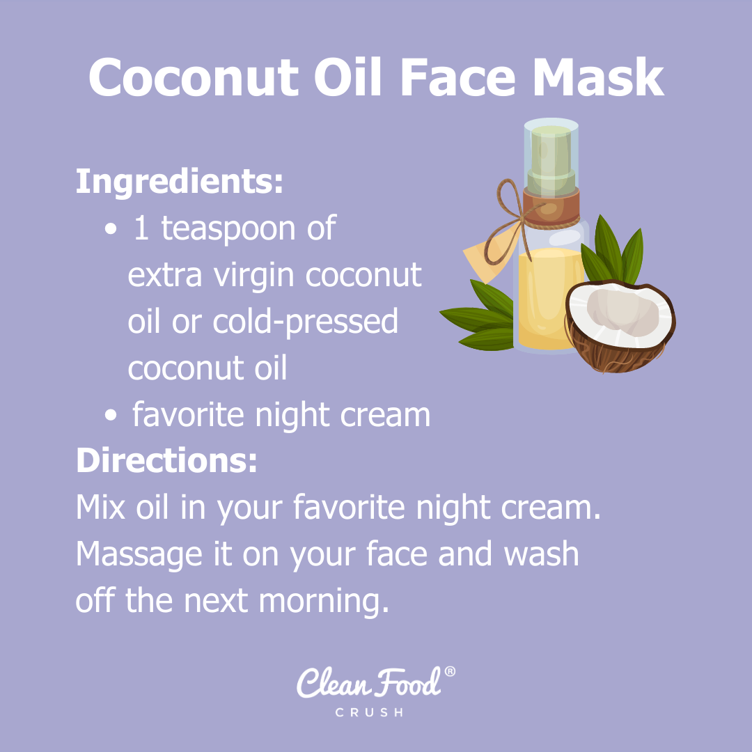- Directions: Mix a teaspoon of extra virgin coconut oil or cold-pressed coconut oil in your favorite night cream. Massage it on your face and wash off the next morning.