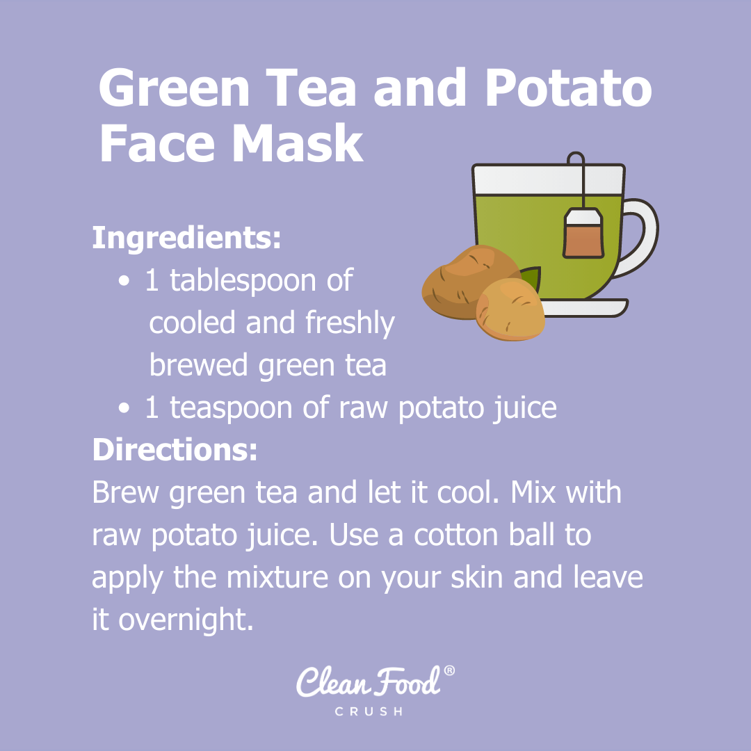 - Directions: Take a tablespoon of freshly brewed (and cooled) green tea and mix a teaspoon of raw potato juice with it. Use a cotton ball to apply the mixture on your skin and leave it overnight.