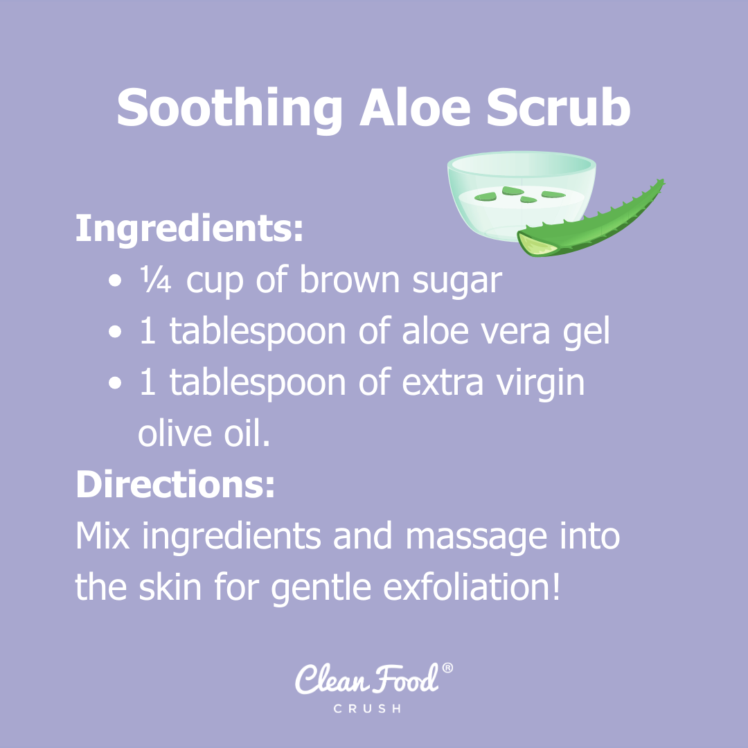 - Directions: Mix ¼ cup of brown sugar, 1 tablespoon of aloe vera gel, and 1 tablespoon of extra virgin olive oil. Massage into the skin for gentle exfoliation!