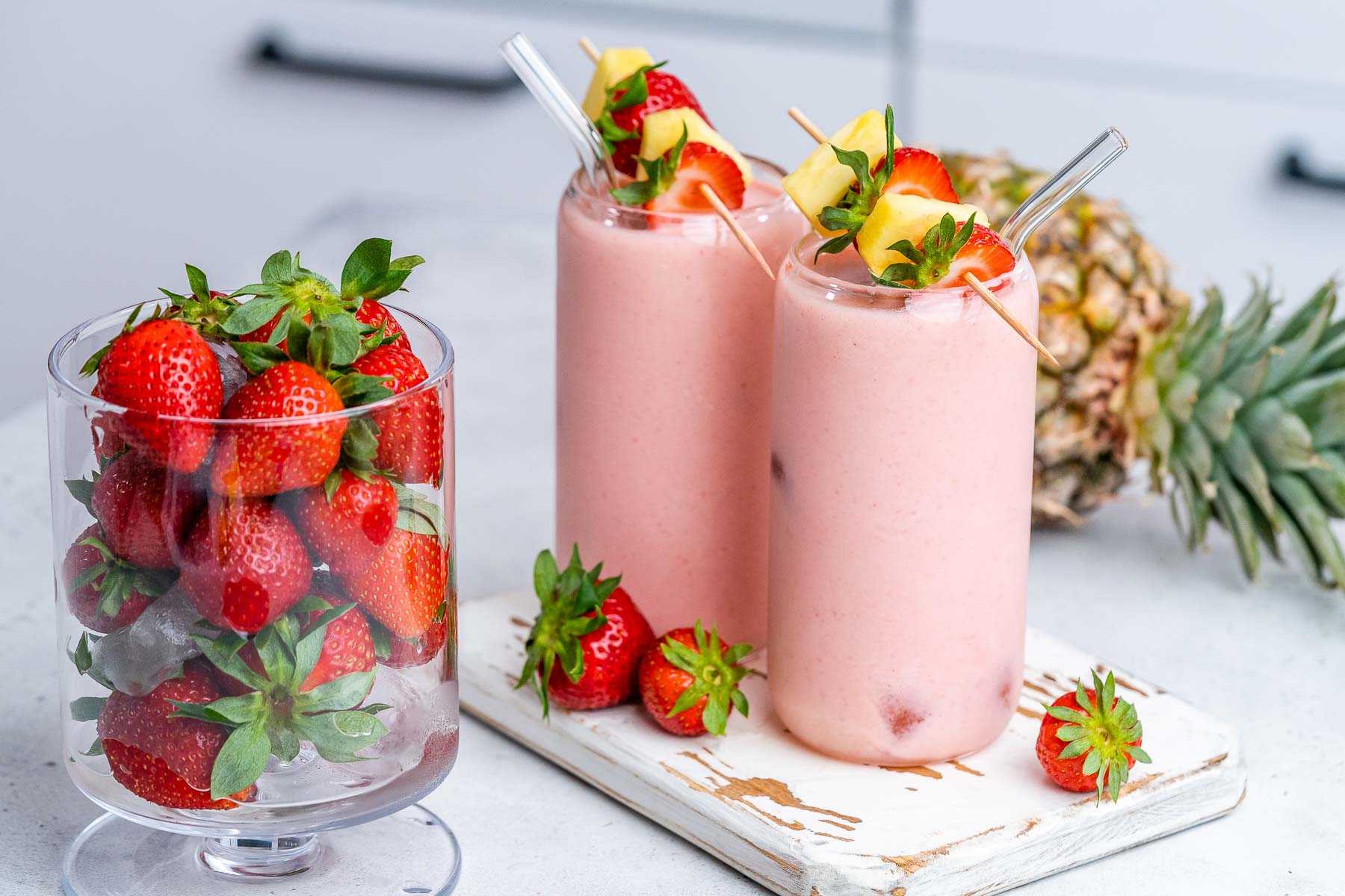 Place coconut milk, strawberries, and pineapple in a blender and blend until smooth.