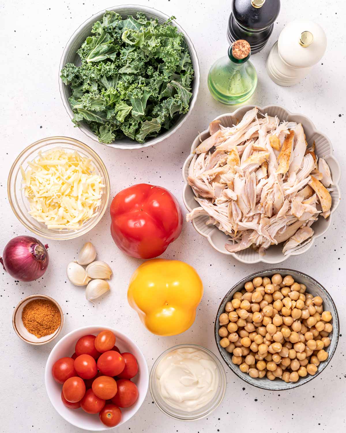 Place the peppers, onion, garlic, tomatoes, kale, and taco seasoning in a large bowl.
