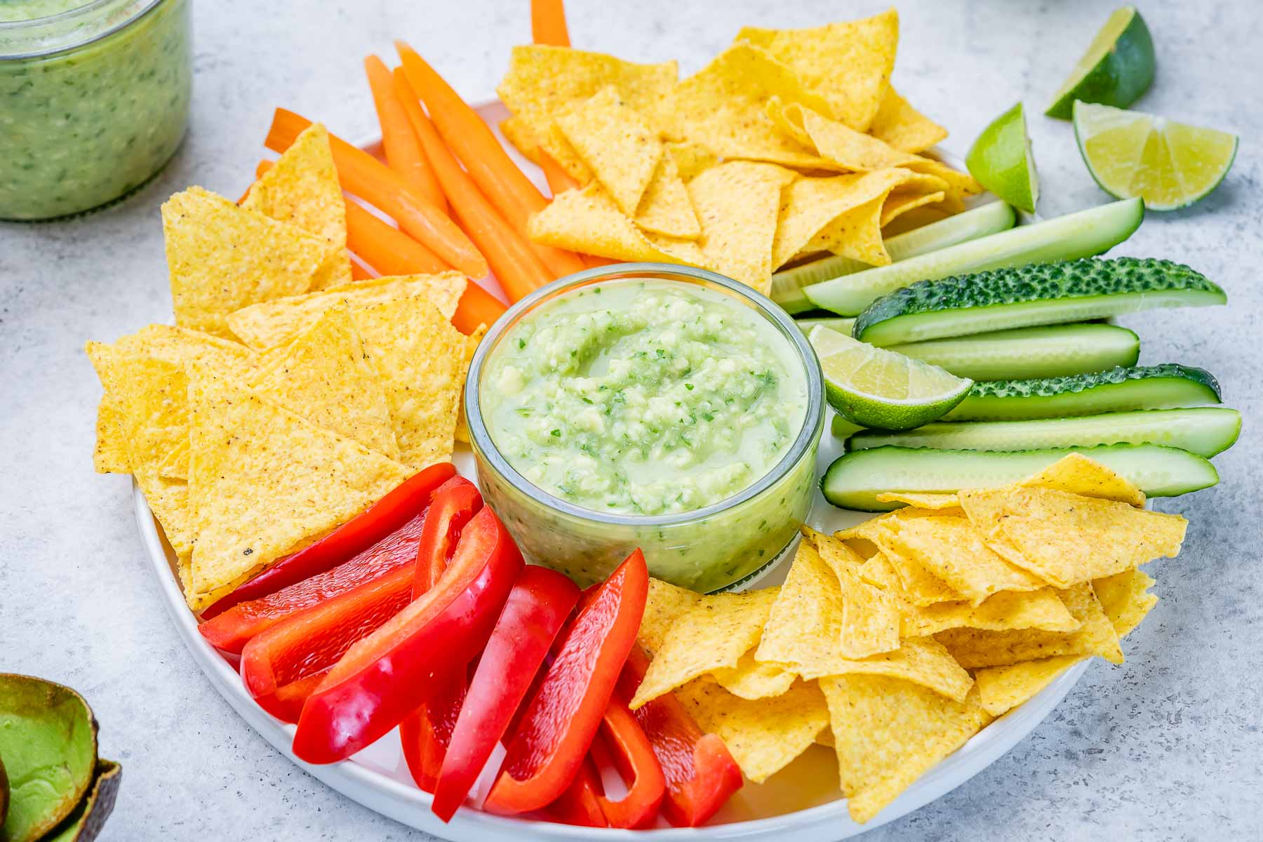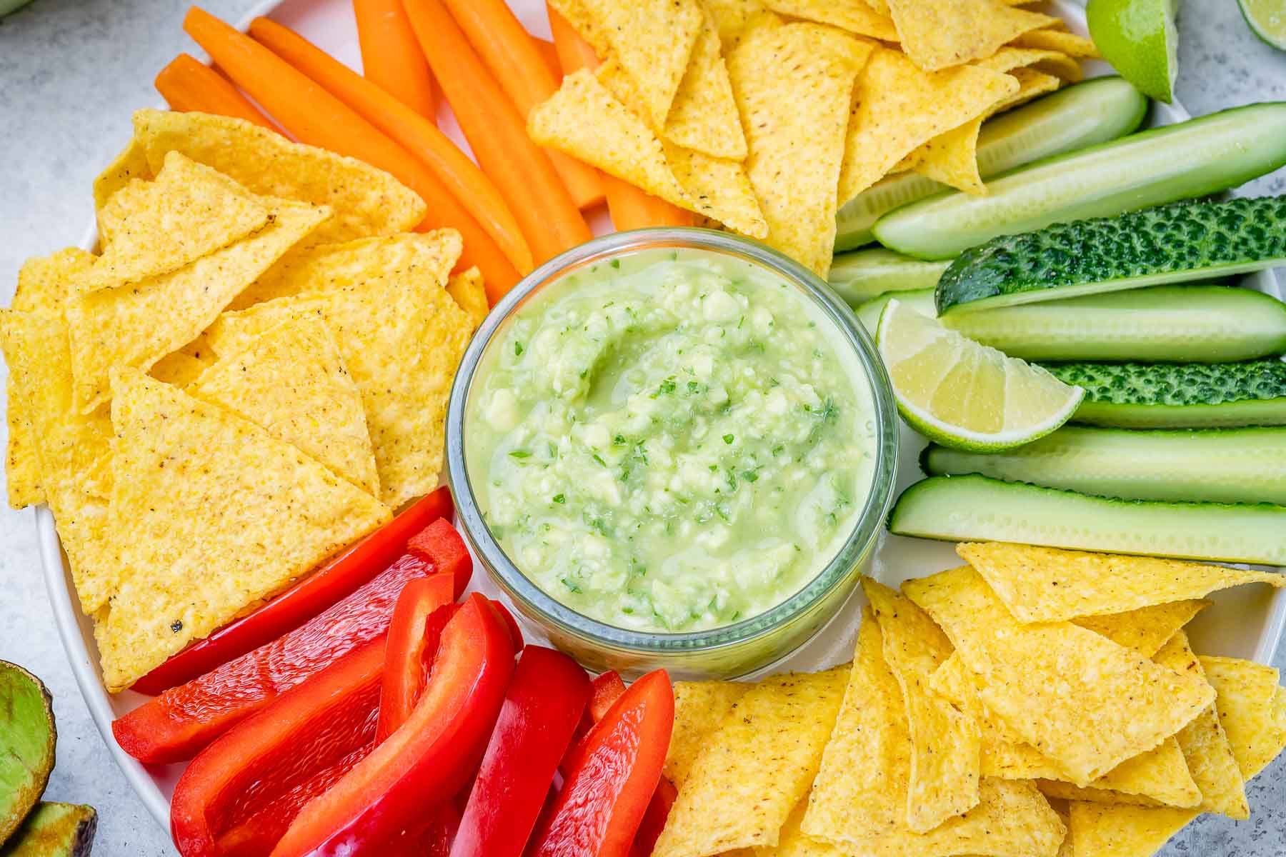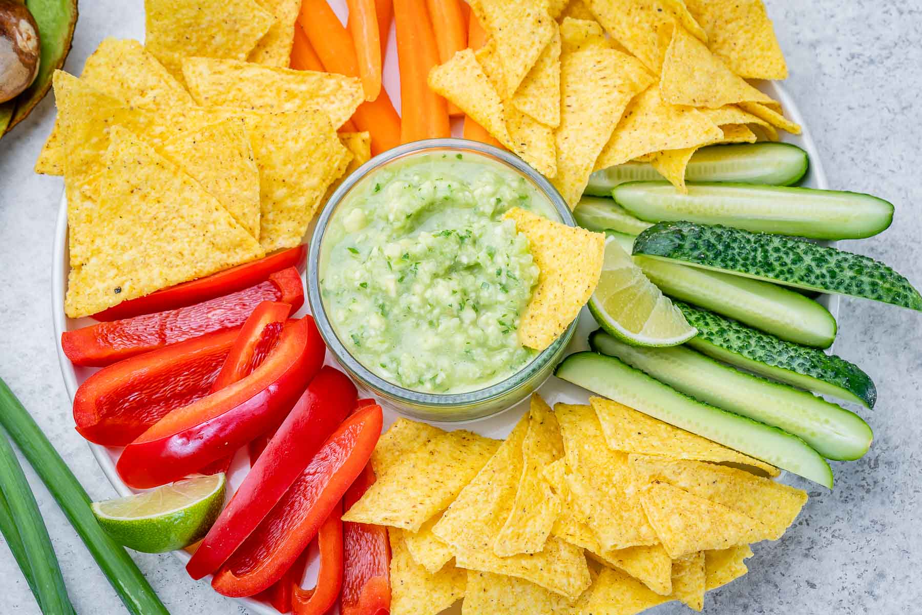 - Serve with corn chips and fresh crunchy veggies of choice.