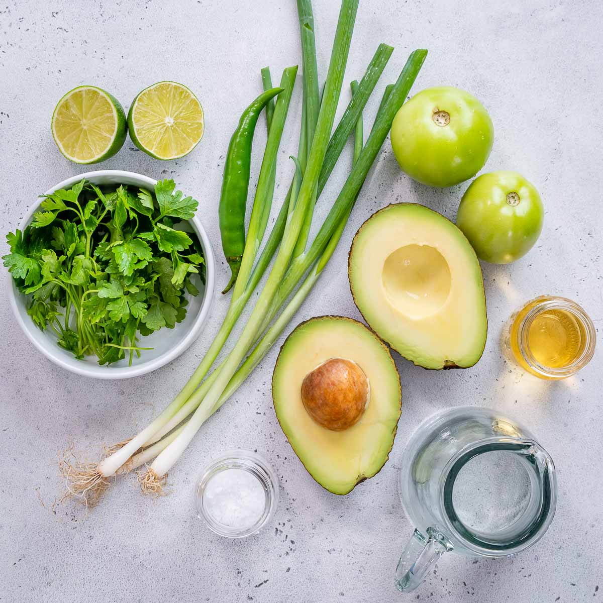 - 1 green pepper of choice, stem, and seeds removed for a milder salsa (Anaheim, jalapeño, hatch, or poblano)