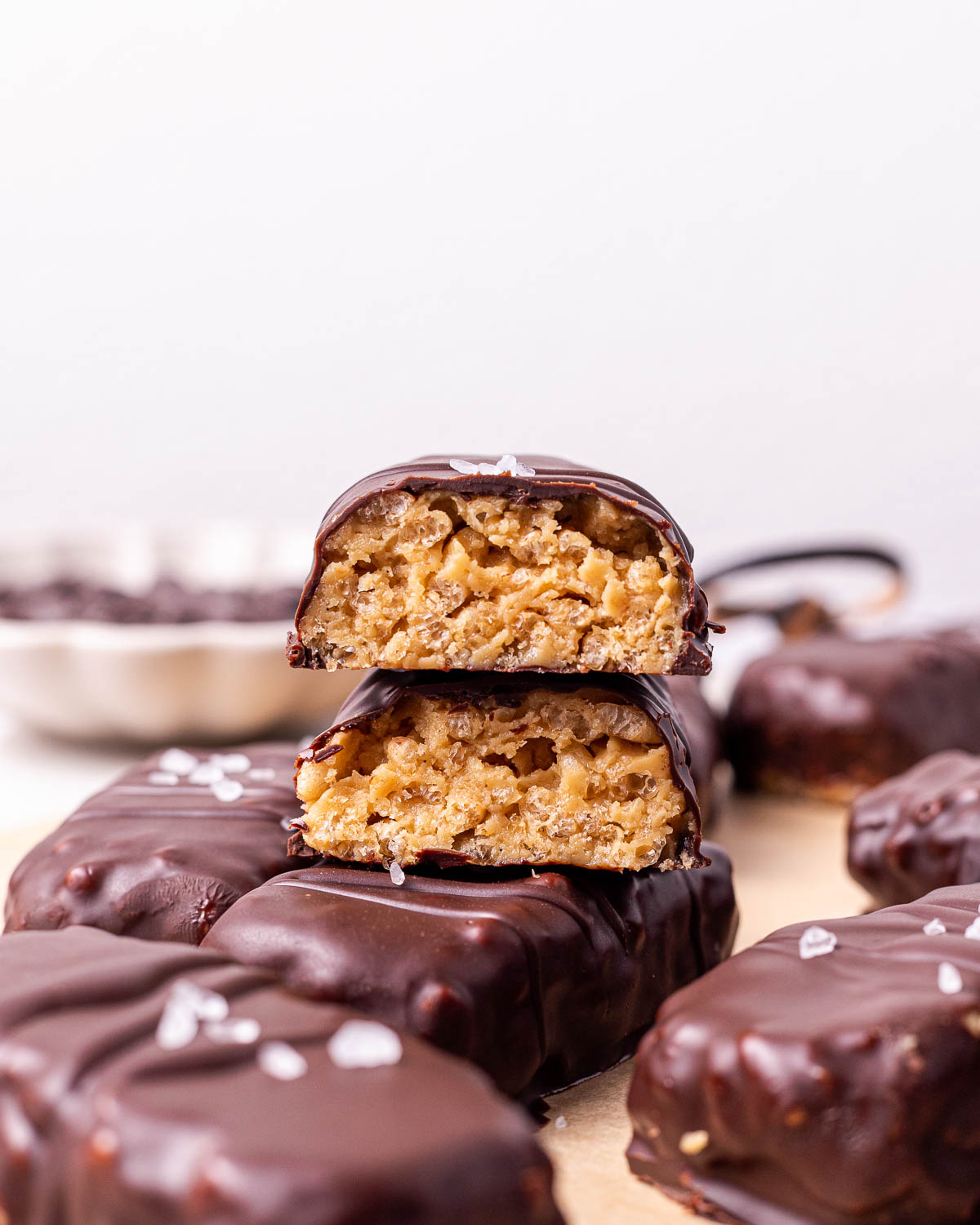 If you’re a chocolate and peanut butter fan, these are perfect for you. Feel free to make the recipe your own by swapping peanut butter with almond butter, cashew butter, or sun butter.
