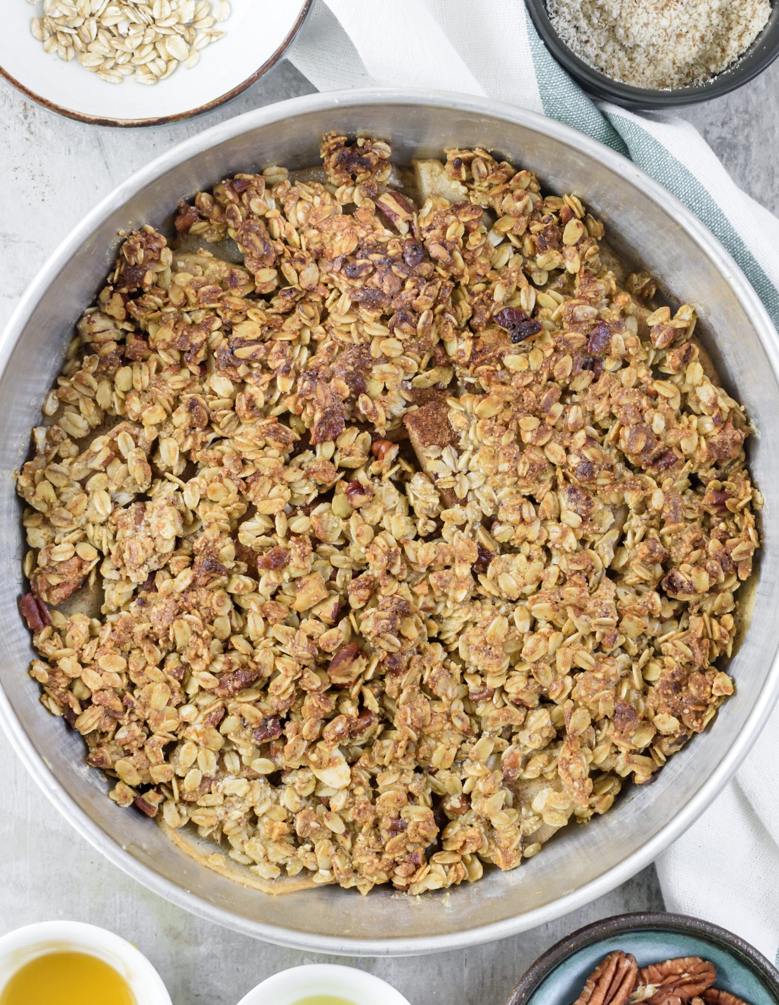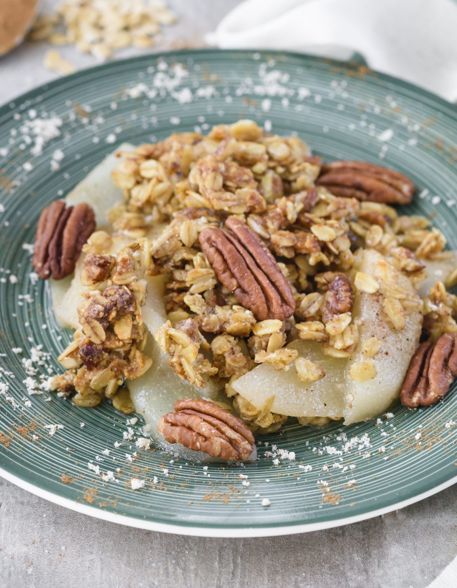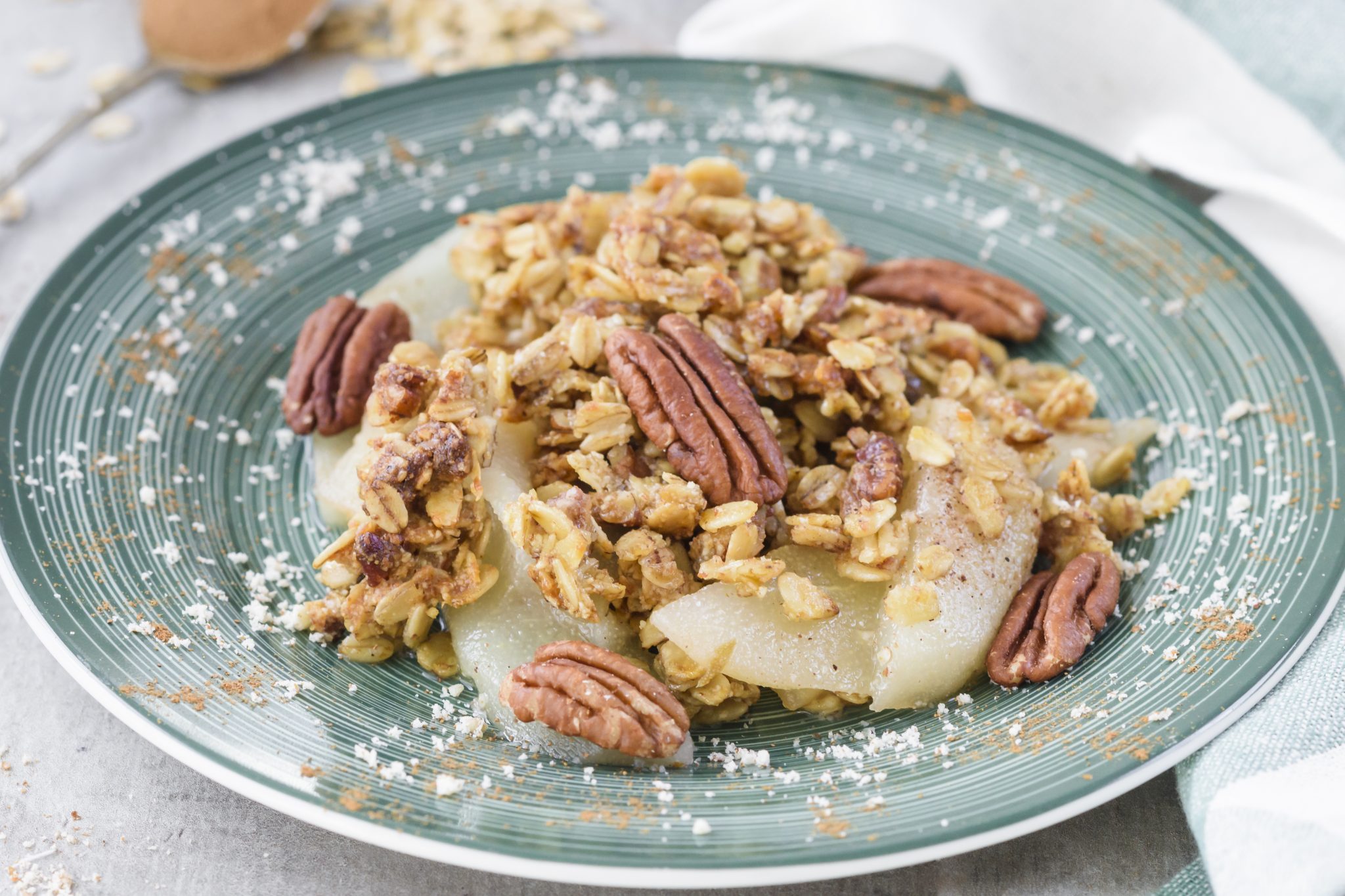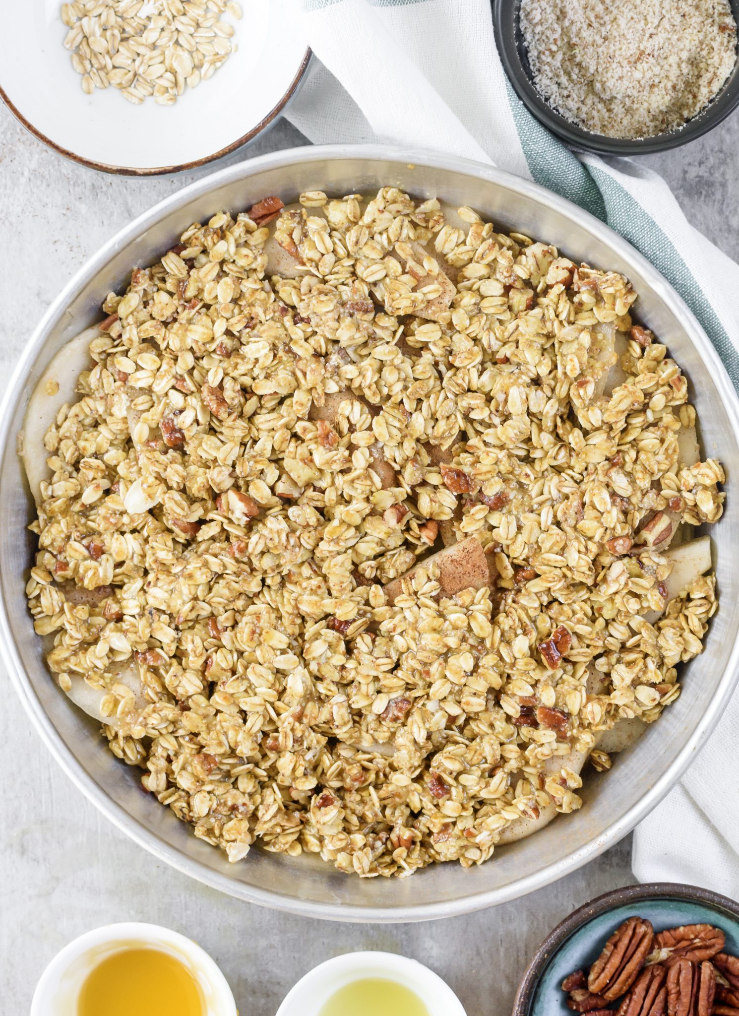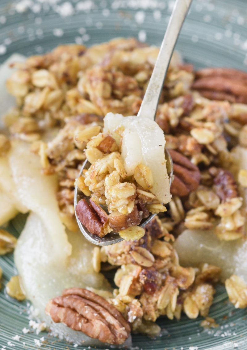 The aroma of cinnamon, pears, and sweetness will fill your home while your crumble bakes.