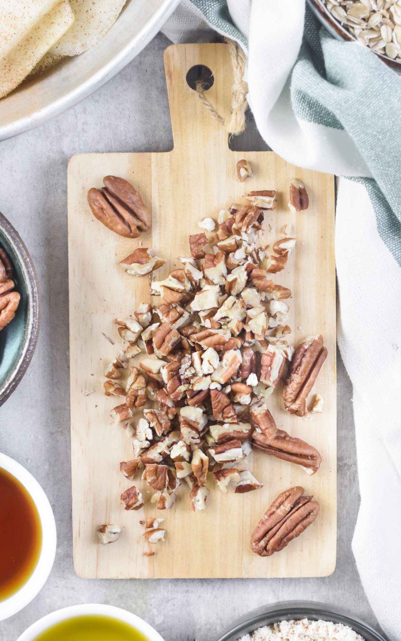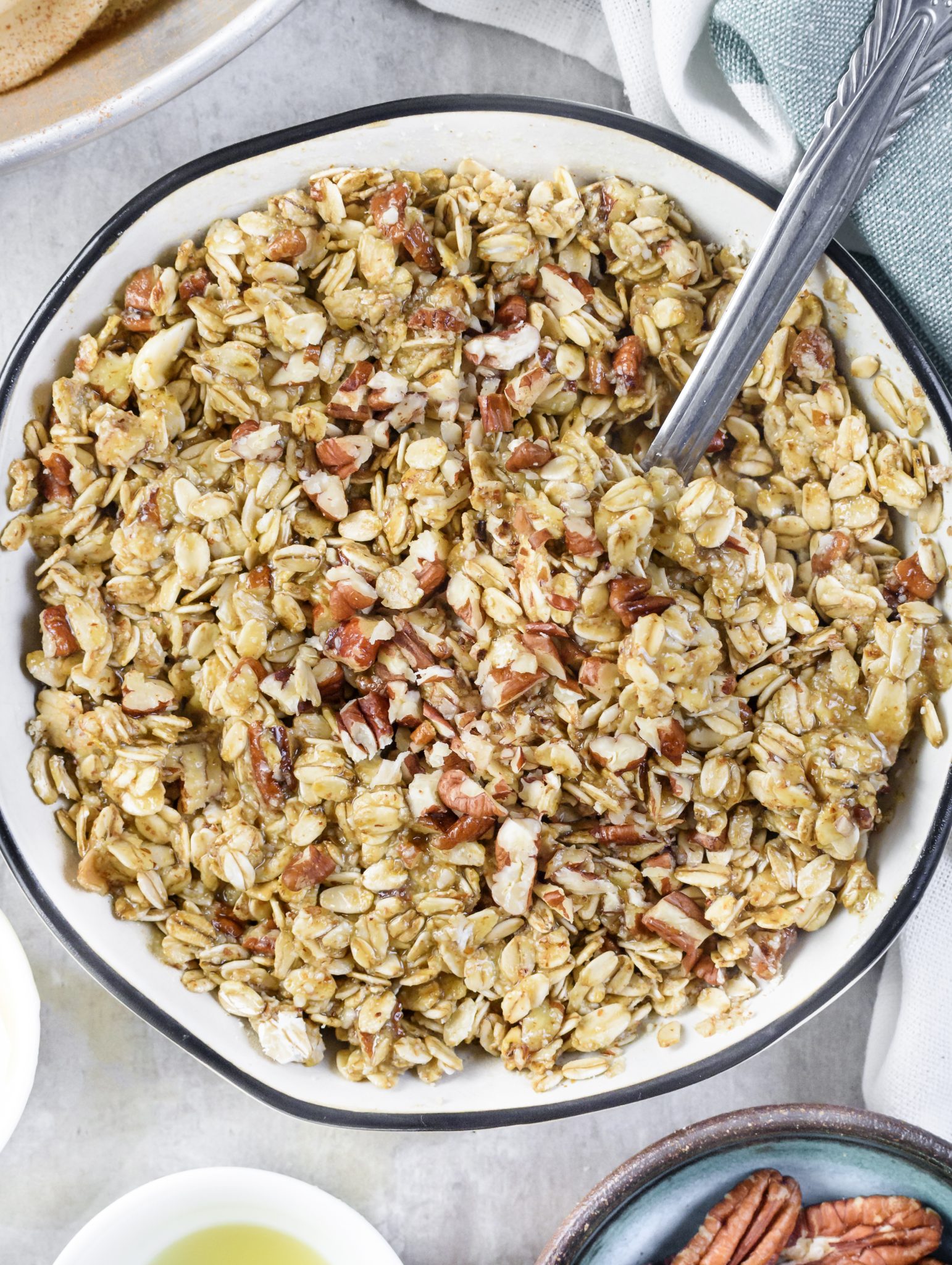- In a mixing bowl, combine your pecans and all remaining ingredients with a fork.