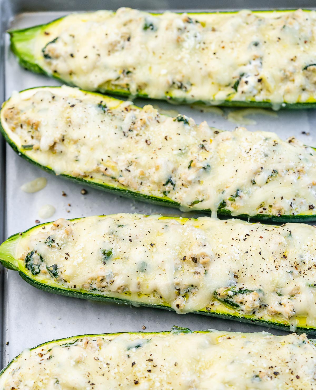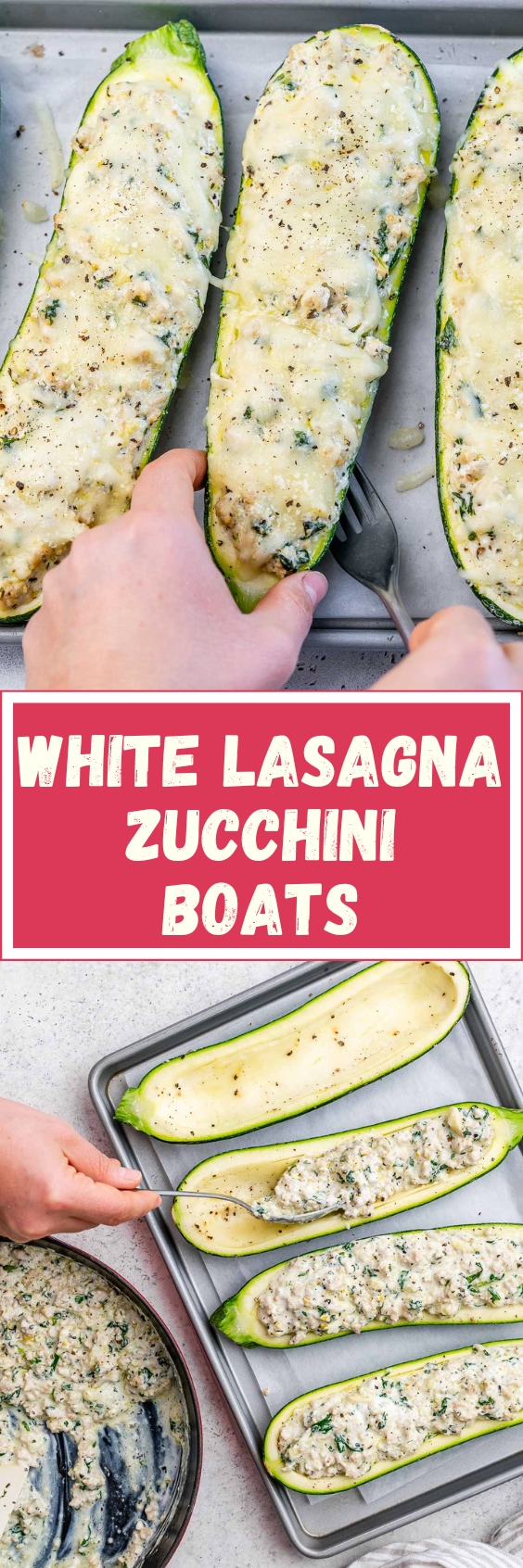 Creamy, Satisfying and Indulgent tasting White Lasagna Zucchini Boats!