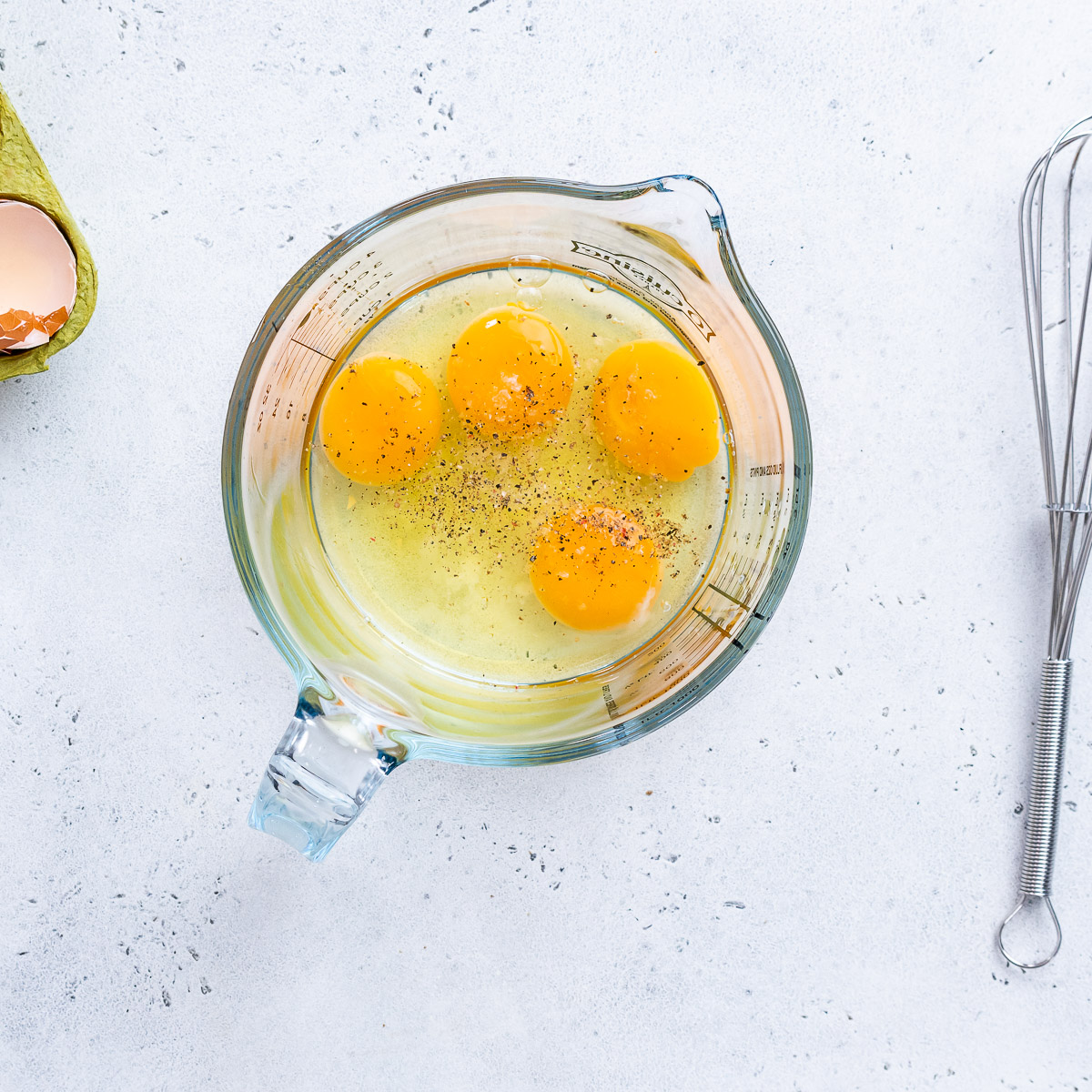- Meanwhile, in a bowl, beat the eggs with sea salt and pepper.