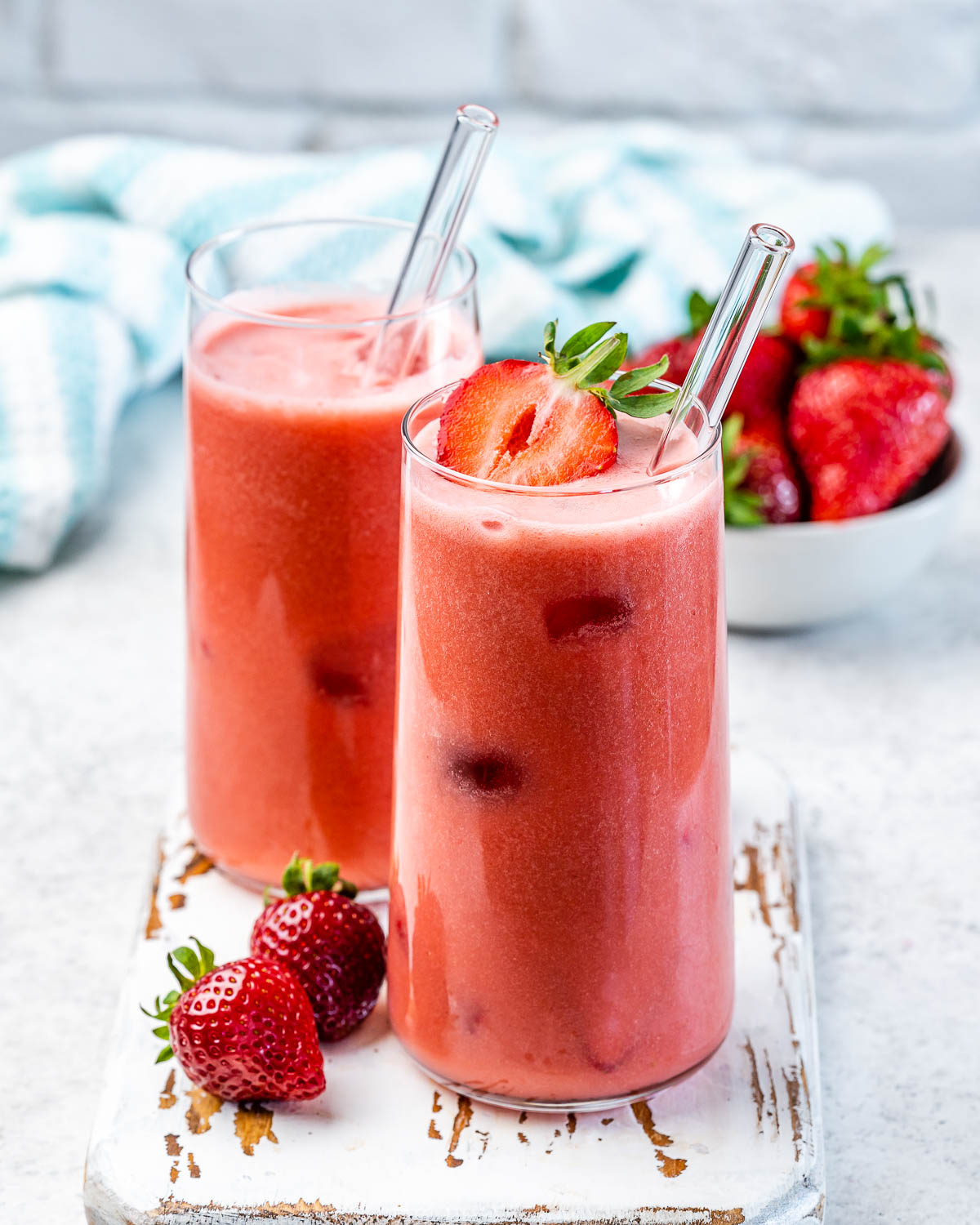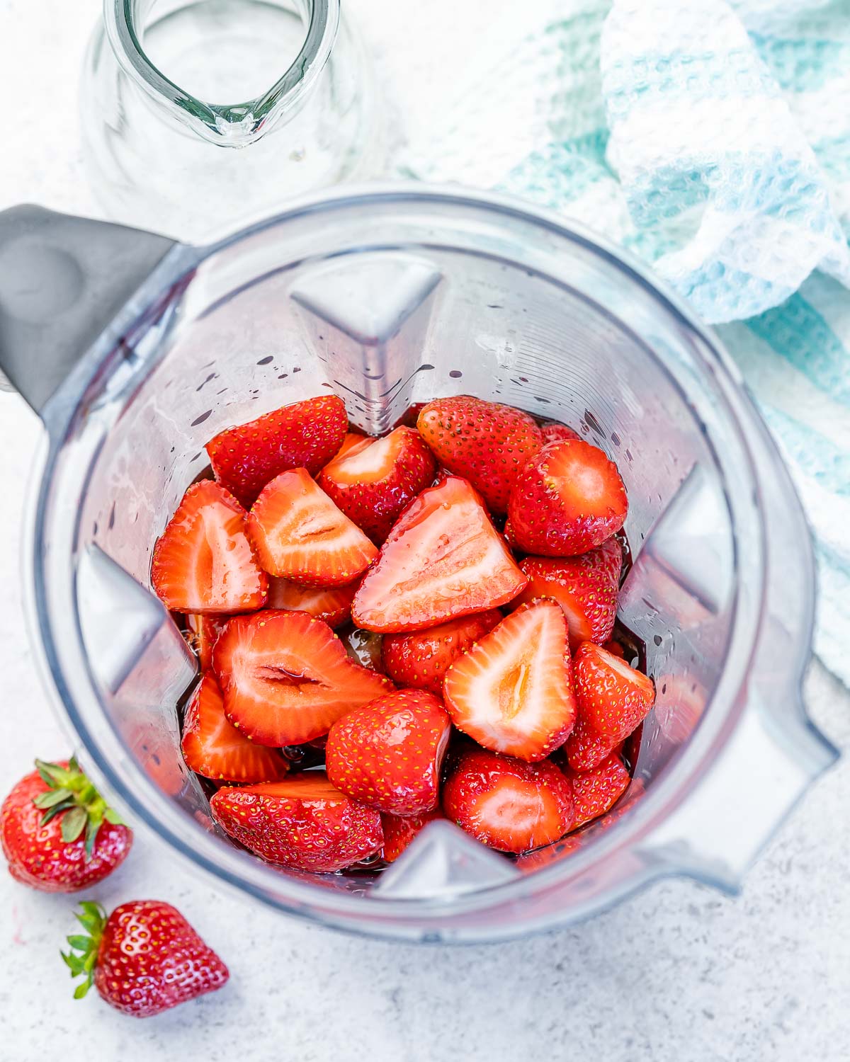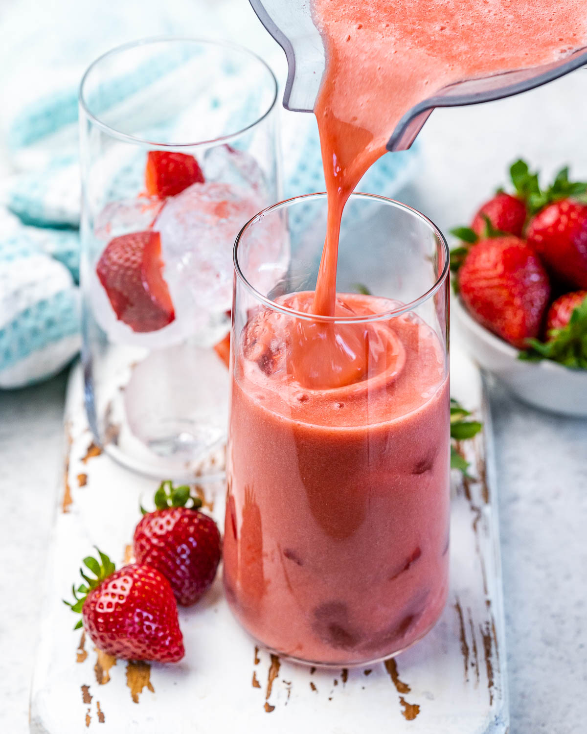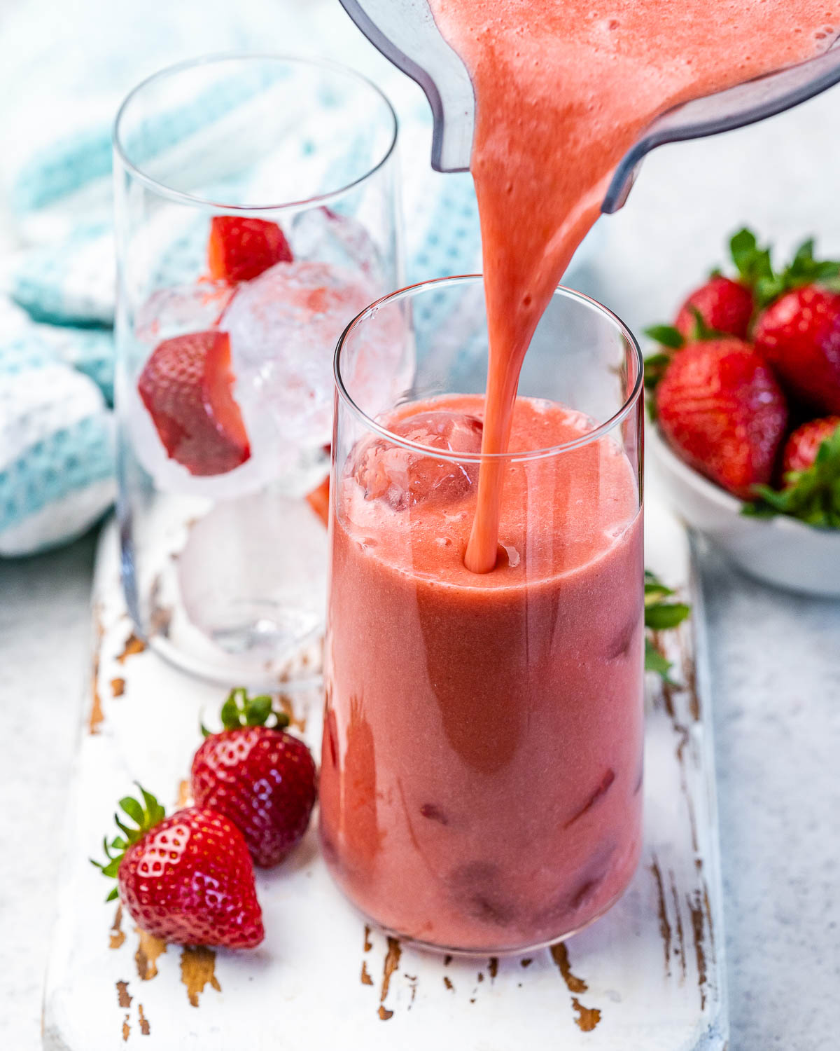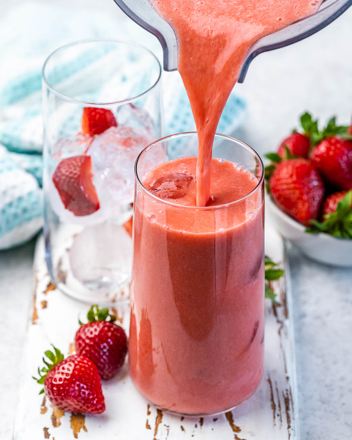 Additional fresh chopped strawberries and ice