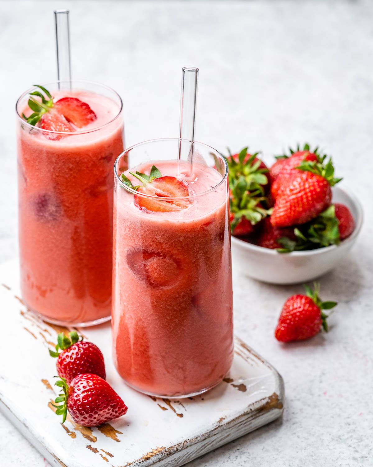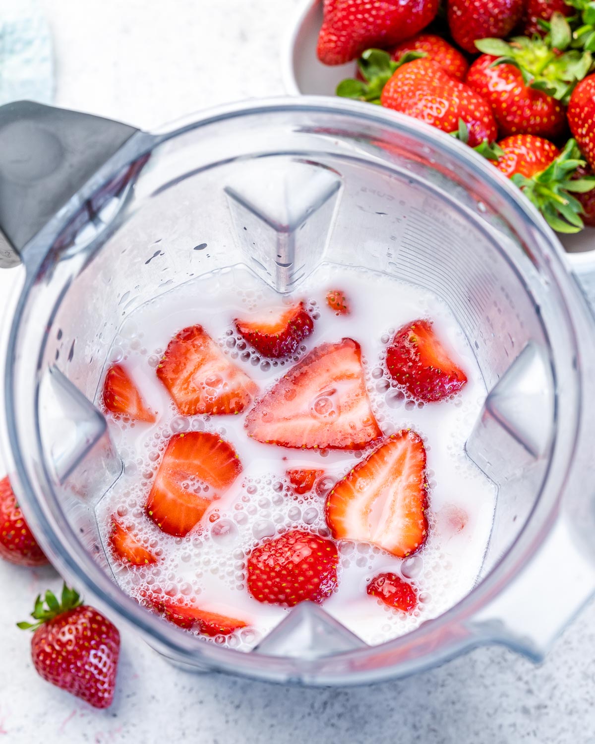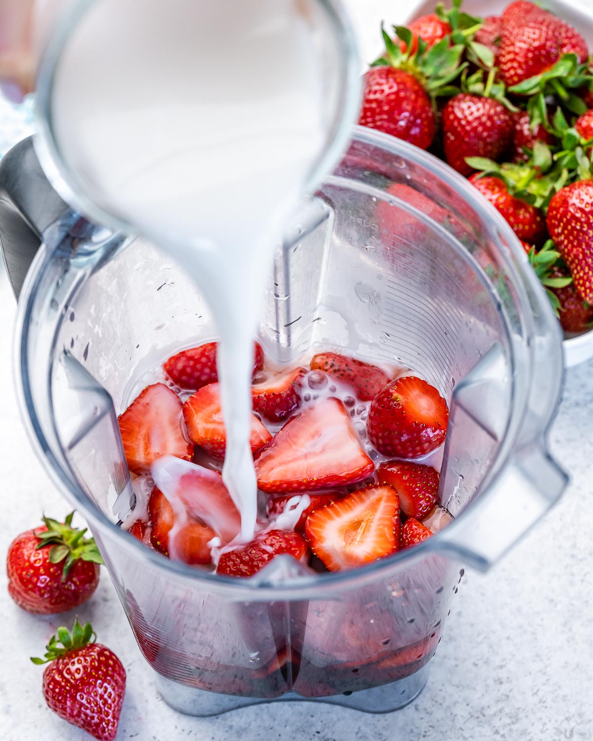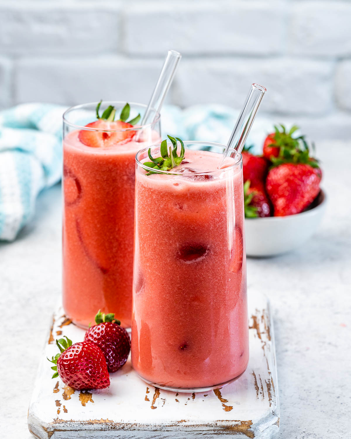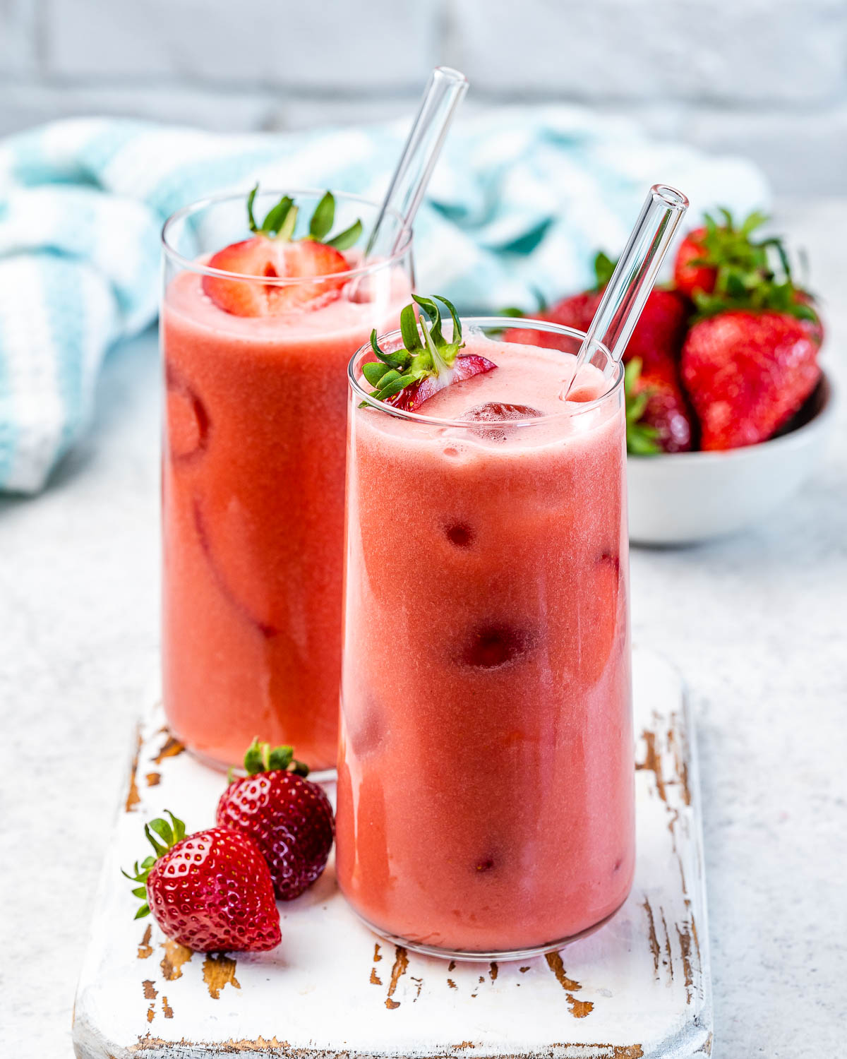 Additional fresh chopped strawberries and ice