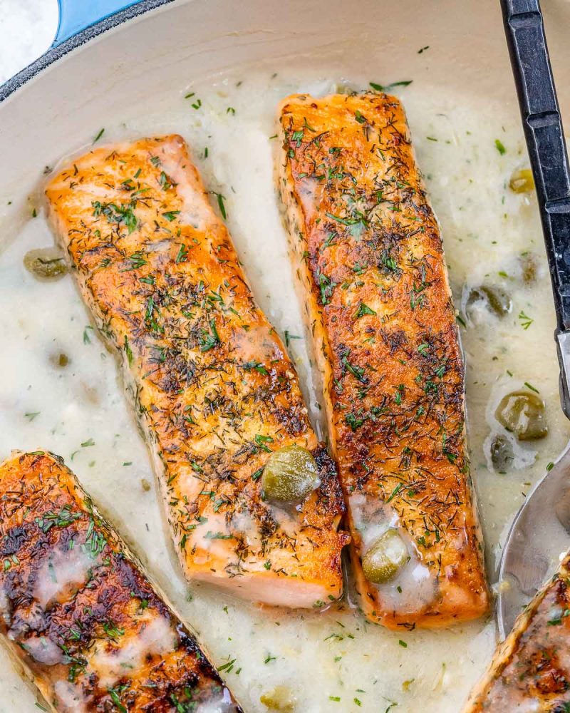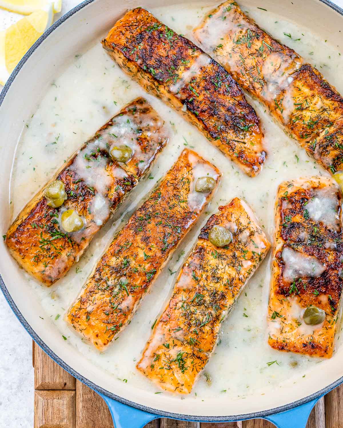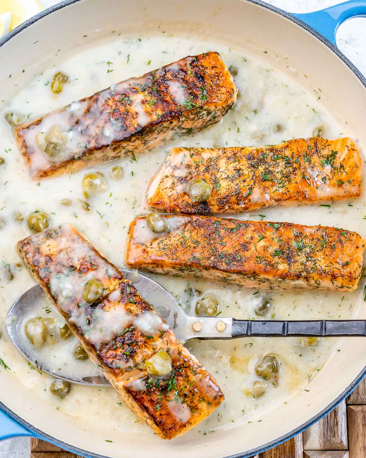 Creamy Lemon Capers Salmon is definitely one of those recipes! Your people will be SO impressed – and have NO idea how EASY this is to make. Your secret is safe here! You deserve all the credit for your effort!