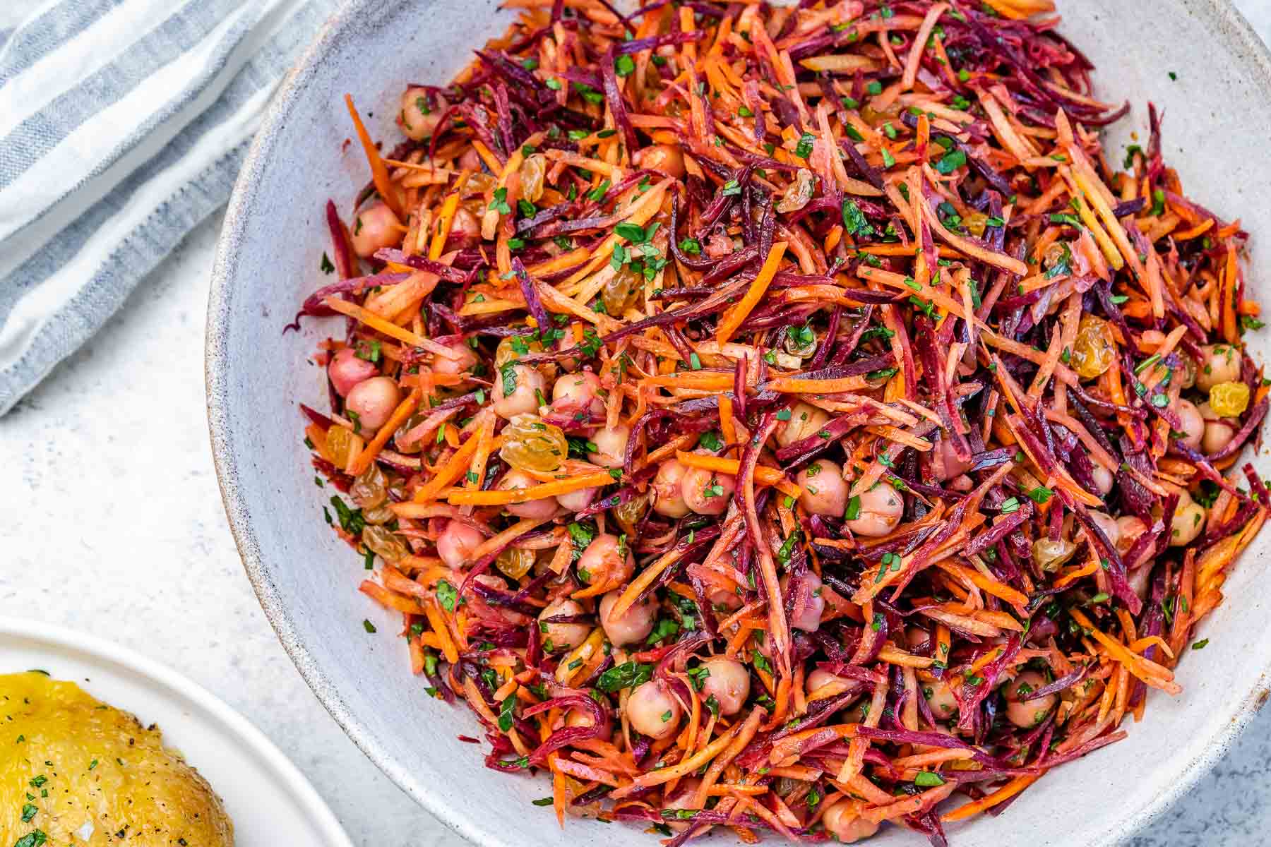 Our Spiced Carrot Salad is surprisingly hearty and sturdy…PERFECT to make for meal prep for your busy week ahead, as it holds up very well in the fridge.