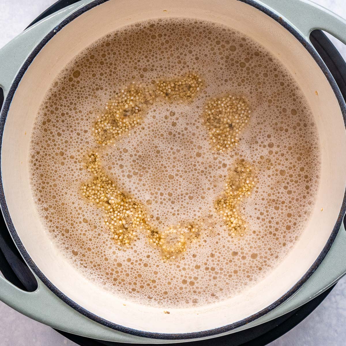 - Bring to a boil over medium-high heat, then reduce the heat to a simmer.