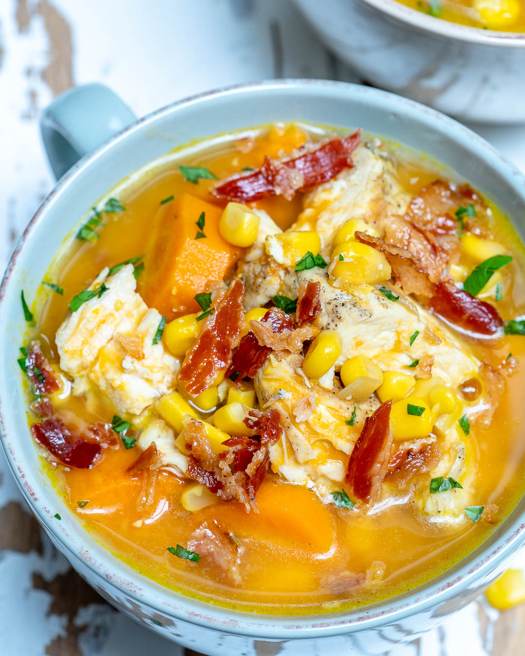 Creamy Chicken + Sweet Potato Corn Chowder Stovetop, Slow Cooker, and Instant Pot directions below! Warm up those bellies with a DELICIOUS hot Chowder tonight! DAIRY FREE! There is NO dairy milk or cream of any type added to this chowder recipe. We blended a small portion of the finished soup, then added it back Read More!