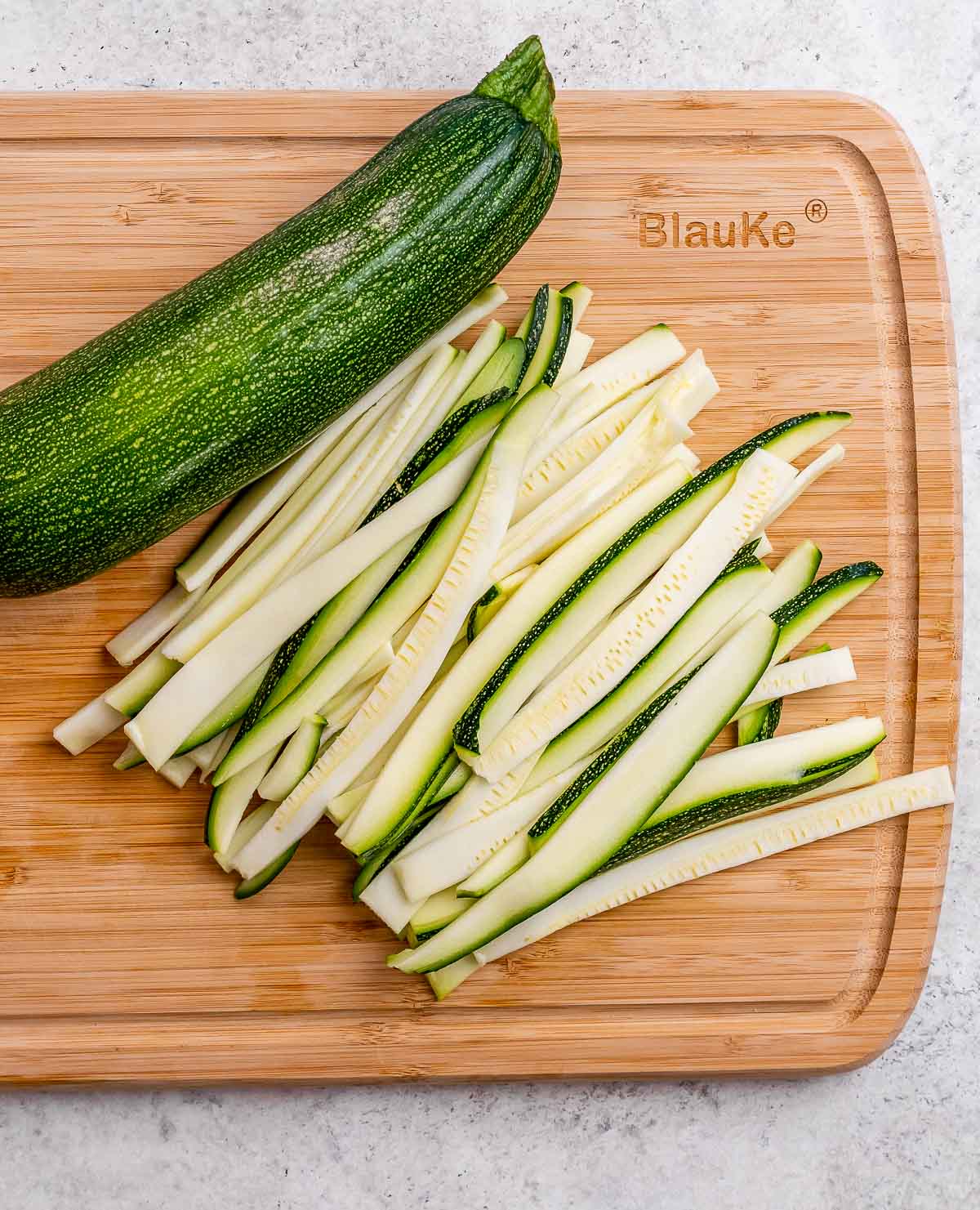 Prepare your zucchini noodles by carefully slicing them into strips or using a spiralizer.