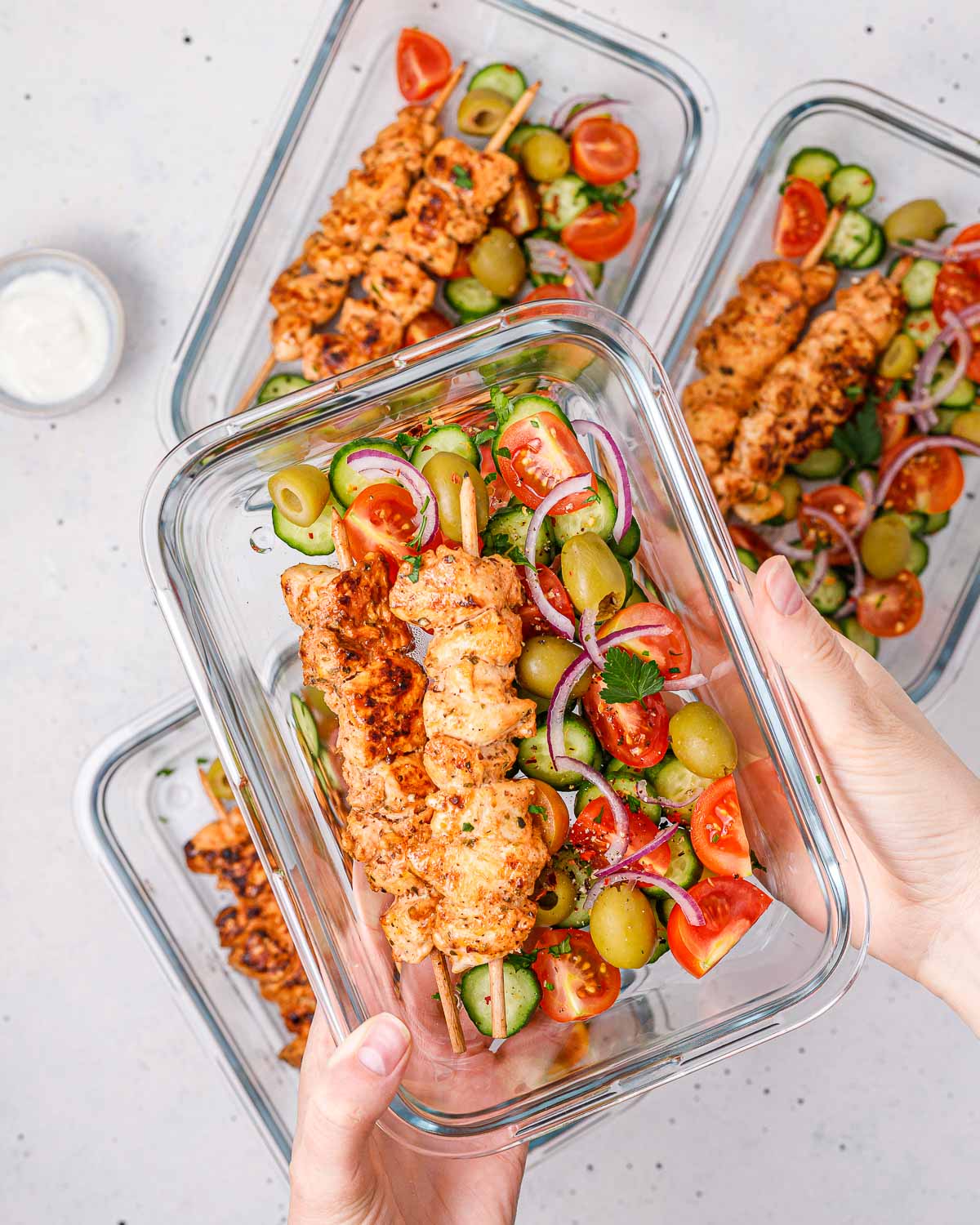 These pesto chicken kabobs are simple and quick, meaning in about 25 minutes, you can be passing them out to guests! Consider making extra pesto and saving it for future recipes — it’s just SO good and brightens up any meal!