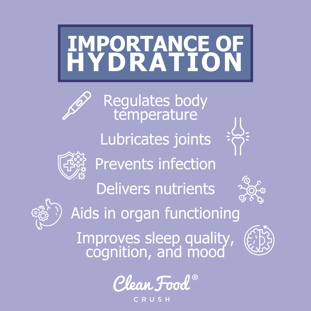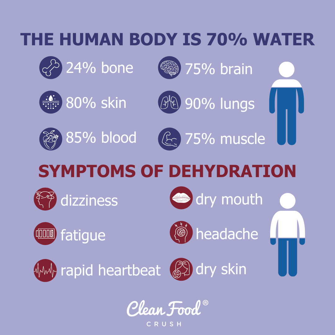 Water plays a role in nearly every system in your body, including your heart, brain, blood, muscles, and other vital organs for life. Studies show that most Americans don’t drink enough water daily, so it’s crucial to find more ways to make drinking water more of a habit (see tips here!) and stay hydrated.