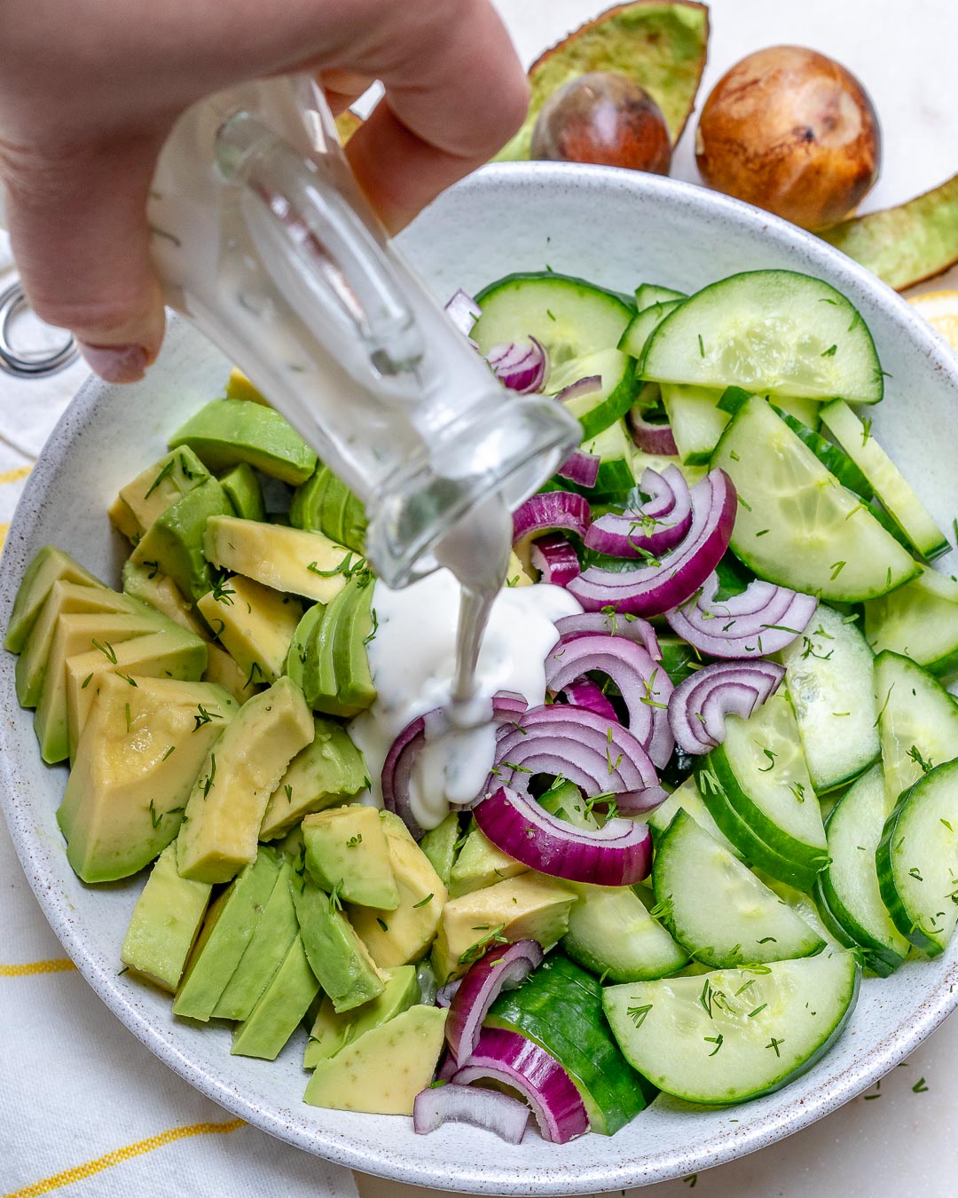 Here’s another simple, tangy, creamy, crisp, fresh, and hydrating salad to fill out your Summer weekly menus! Make it for a quick lunch, or double the recipe and make a big ole’ bowl for your backyard BBQs!