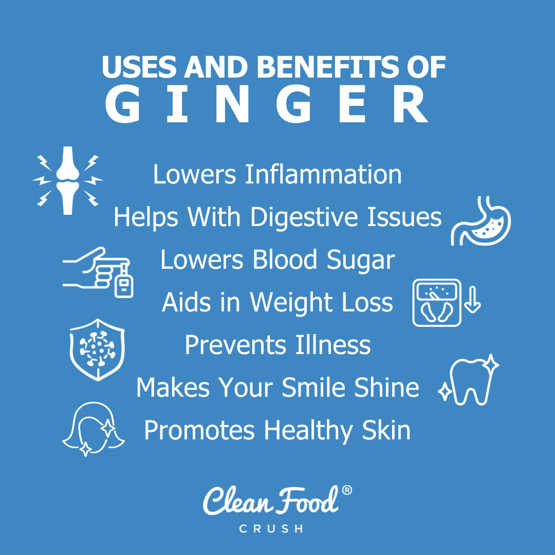 In addition to its anti-nausea properties and ability to kill off the bad guys in our gut that can harm us, ginger is a powerful inflammation fighter and immune booster.