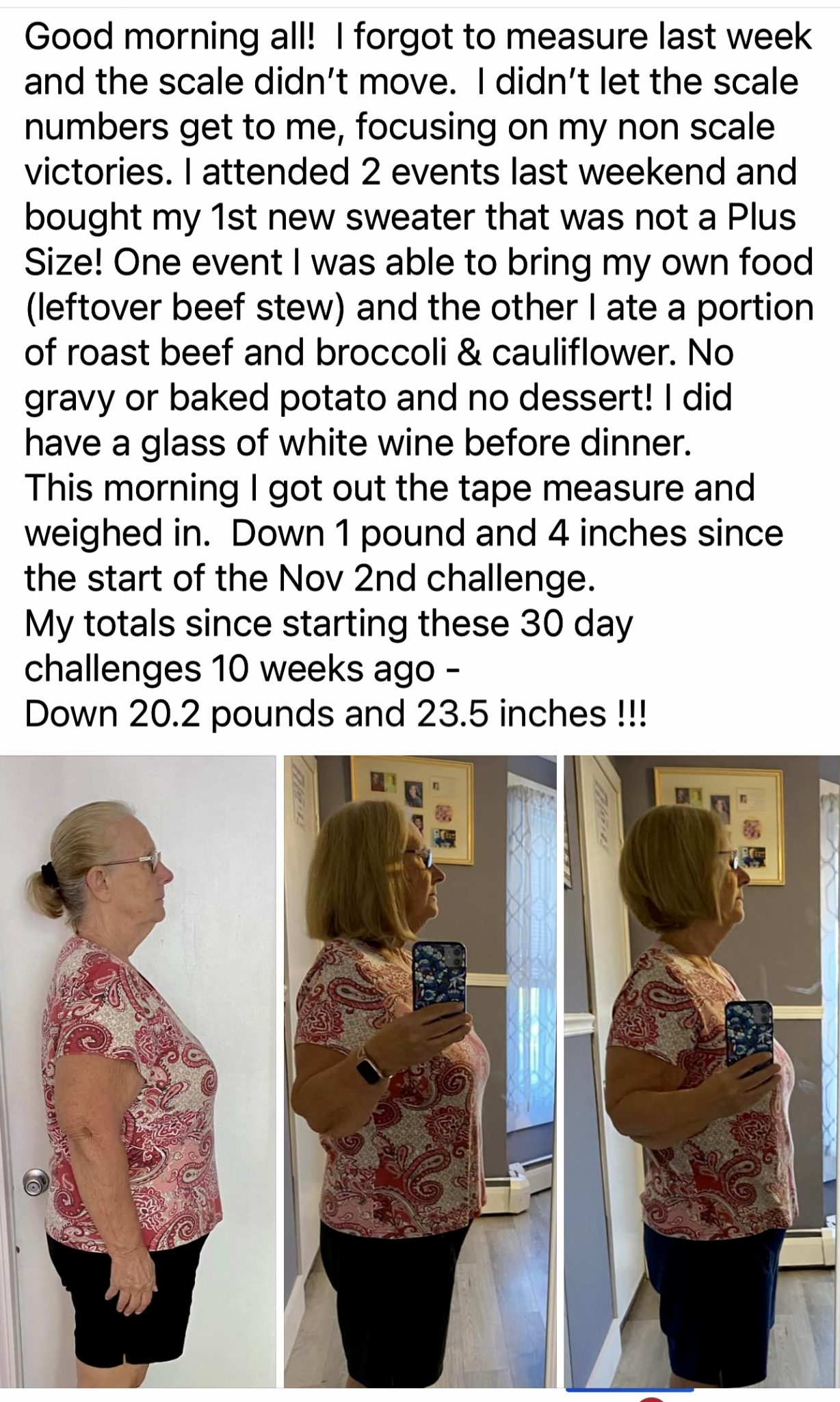 🎉Now, after completing my third CFC challenge, I’ve lost a whopping 20.2 pounds and 23.5 inches!🎉
